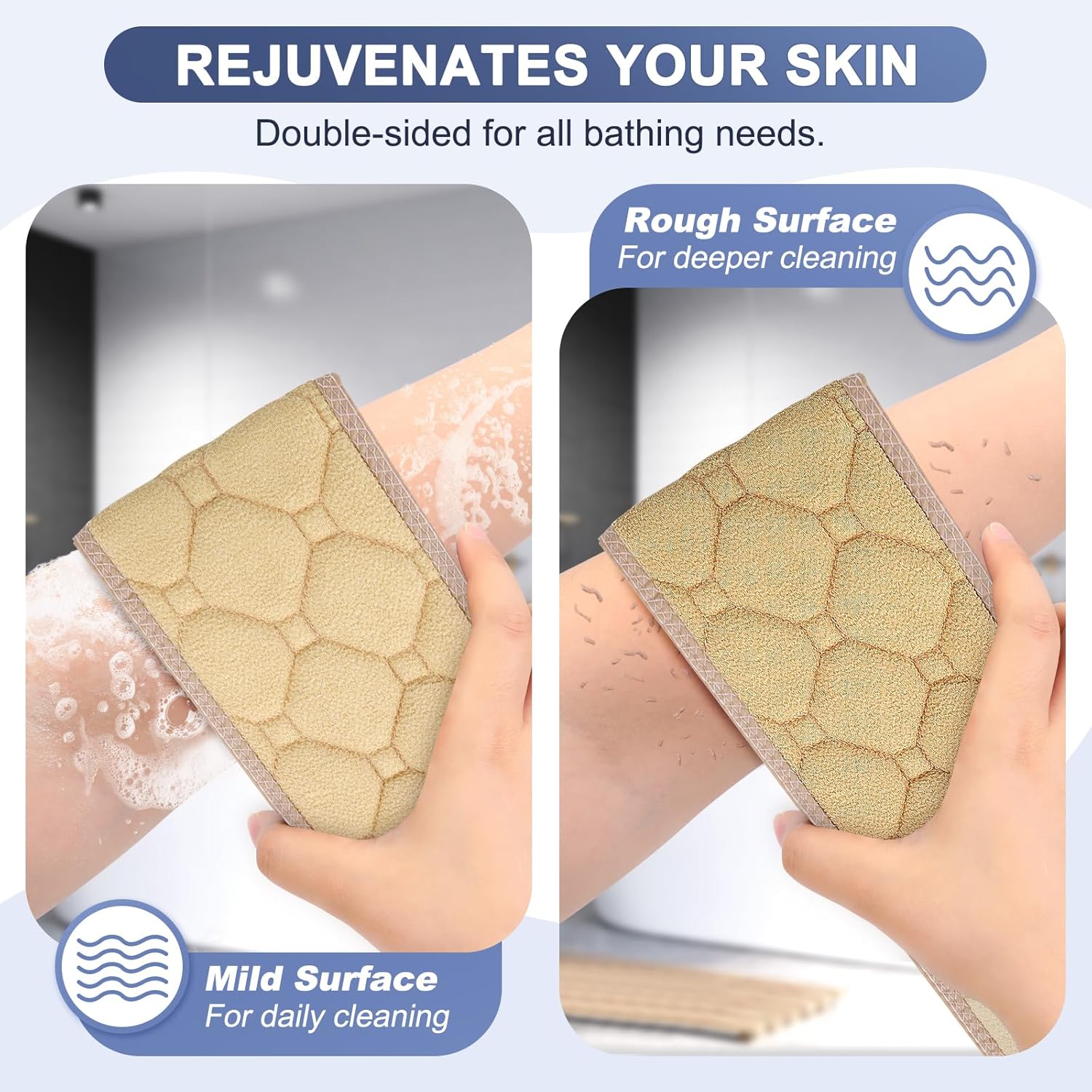 - 【Rejuvenates Your Skin】The Eaxun back scrubber is made of natural plant fibers. The double-sided concave and convex textured fabrics are specially designed for the back skin. The rough surface is used for a deeper removal of dirt, dead skin, and so on. Perfect for exfoliating and not irritating, without damaging the skin. And the mild surface is used for daily cleaning.