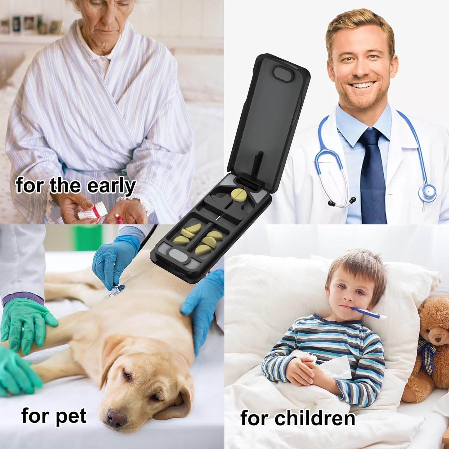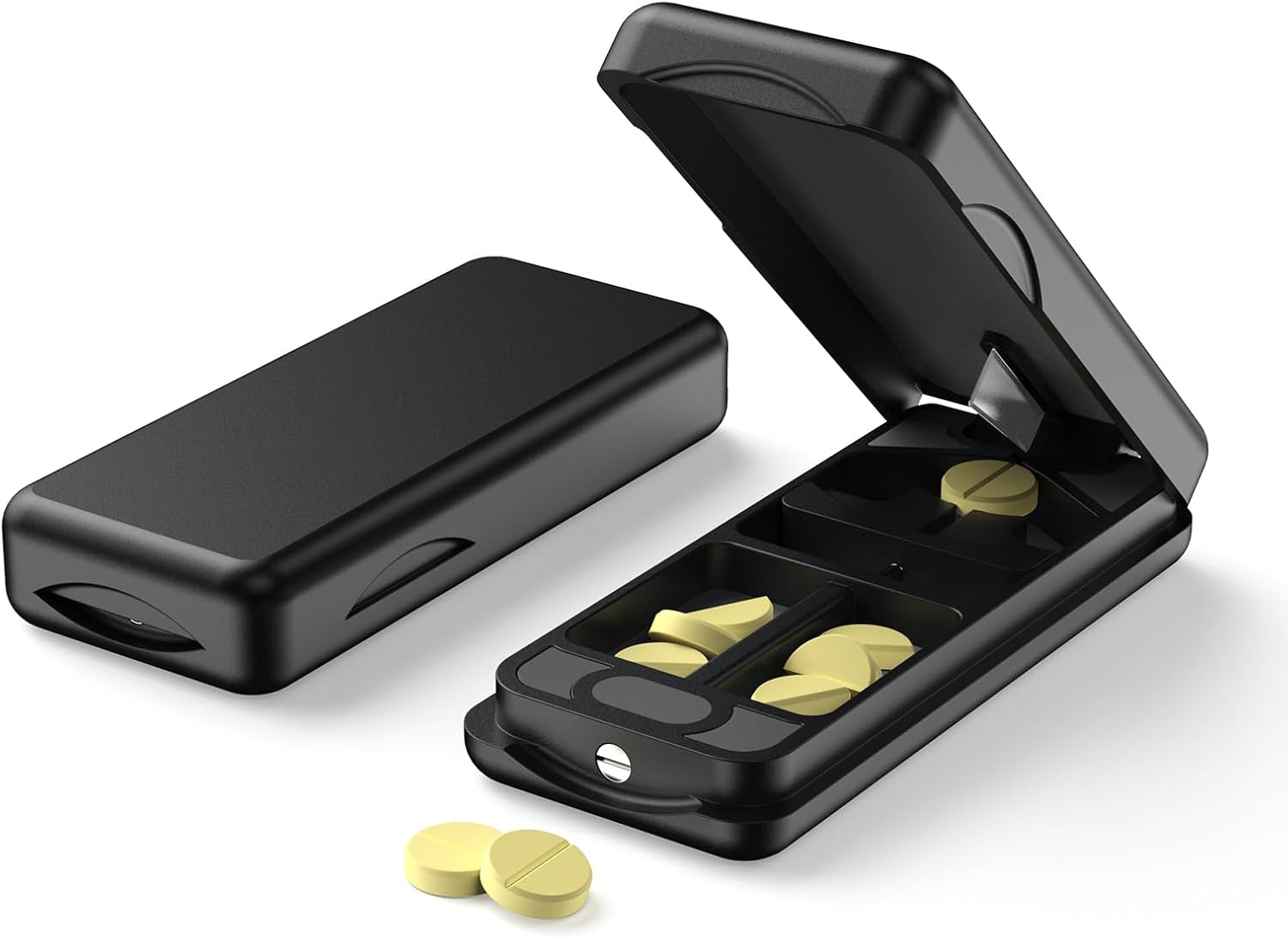 - ✅【ARTHRITIS FRIENDLY】Our pill splitter is very easy to cutter pill into 1/2, 1/4, 1/8. If you or your family suffers from arthritis then this would be a great gift for yourself or your family. Best pill splitter for small pills or large pills. Some drugs have powder, most do not. it depends on pills. Tips: For any pill up to 0.8" size.