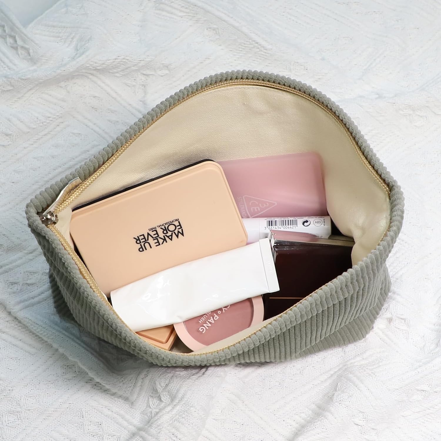 - 【Quality Materials】Our cosmetic bag feature a double-layer design, with an outer layer made of high-quality corduroy fabric and an inner layer made of durable canvas, which is not only durable but also soft to the touch, giving it a luxurious feel.