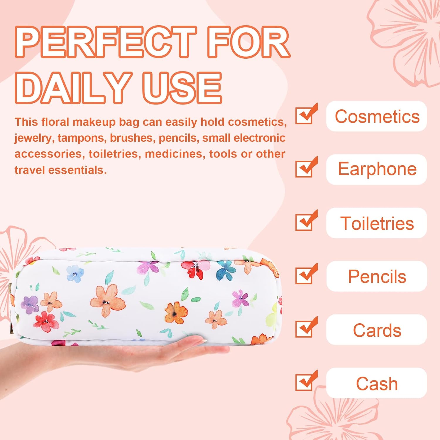- 【Superior Quality】The floral makeup bag is made of lightweight and durable high quality nylon. It is waterproof and easy to clean, helping to protect your cosmetics and toiletries from water spill accidents. Age grading: 156months+;Age group applied in testing: Over 3 years.