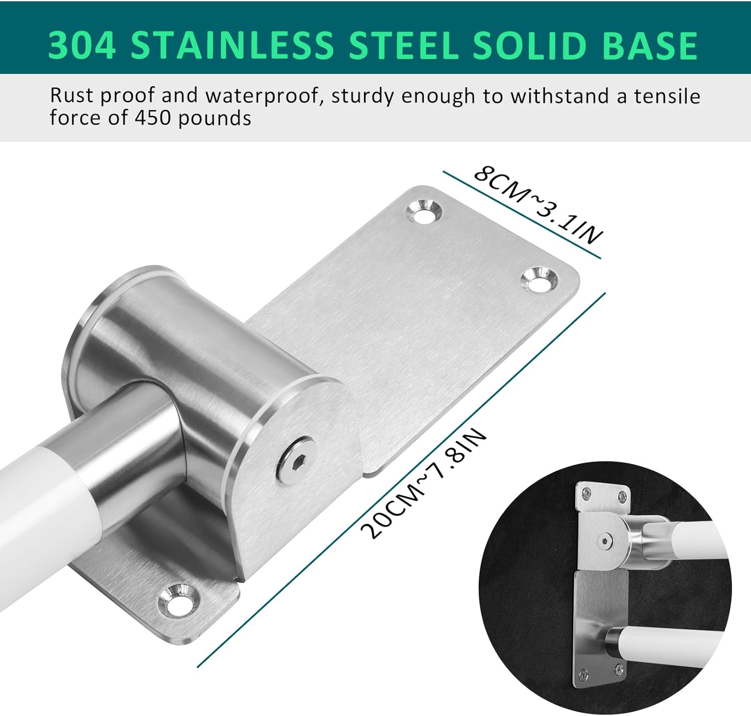 - High Quality Handicap Grab Bars Rail - The inner tube of our flip toilet grab bar is made of 304 stainless steel with 1.3MM wall thickness, and the outer tube is made of ABS nylon material, which is strong enough to withstand 450 pounds of pulling force