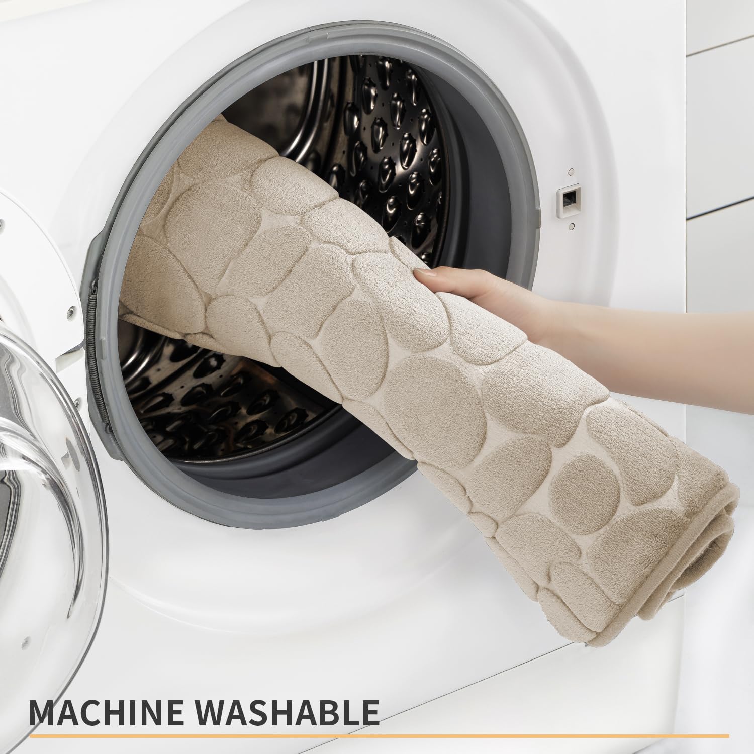 YIHOUSE Memory Foam Bath Mat Cobblestone Bathroom Rugs Super Water Absorbent Bath Mats for Bathroom Machine Washable Bath Rugs(20 x 24,Khaki)