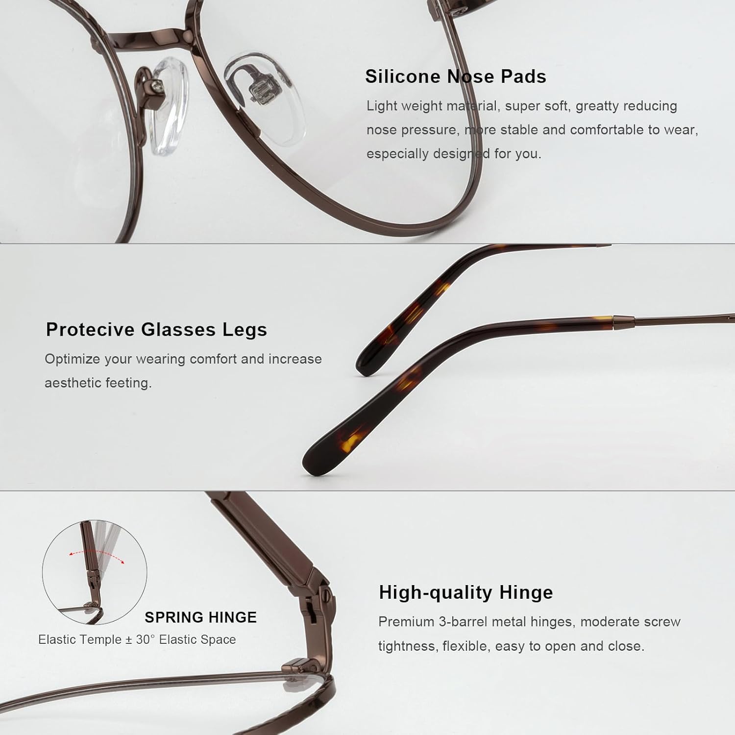 - 【HIGH QUALITY FRAME】- Made with metallic alloy that is ultra light weight yet strong and durable. It comes with spring loaded hinged legs which allows for maximum comfort and flexibility.