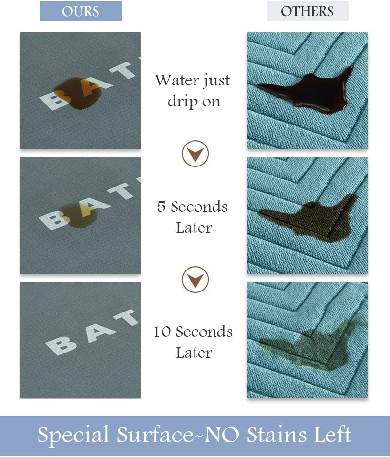 - Absorbent & Stain Resistant: Its specially engineered nano-porous smooth surface instantly absorbs dripping water, leaving no conspicuous watermarks or stains. Whether stepping out of the shower or washing your hands, you can trust this super absorbent bath mat to keep your space clean and safe.