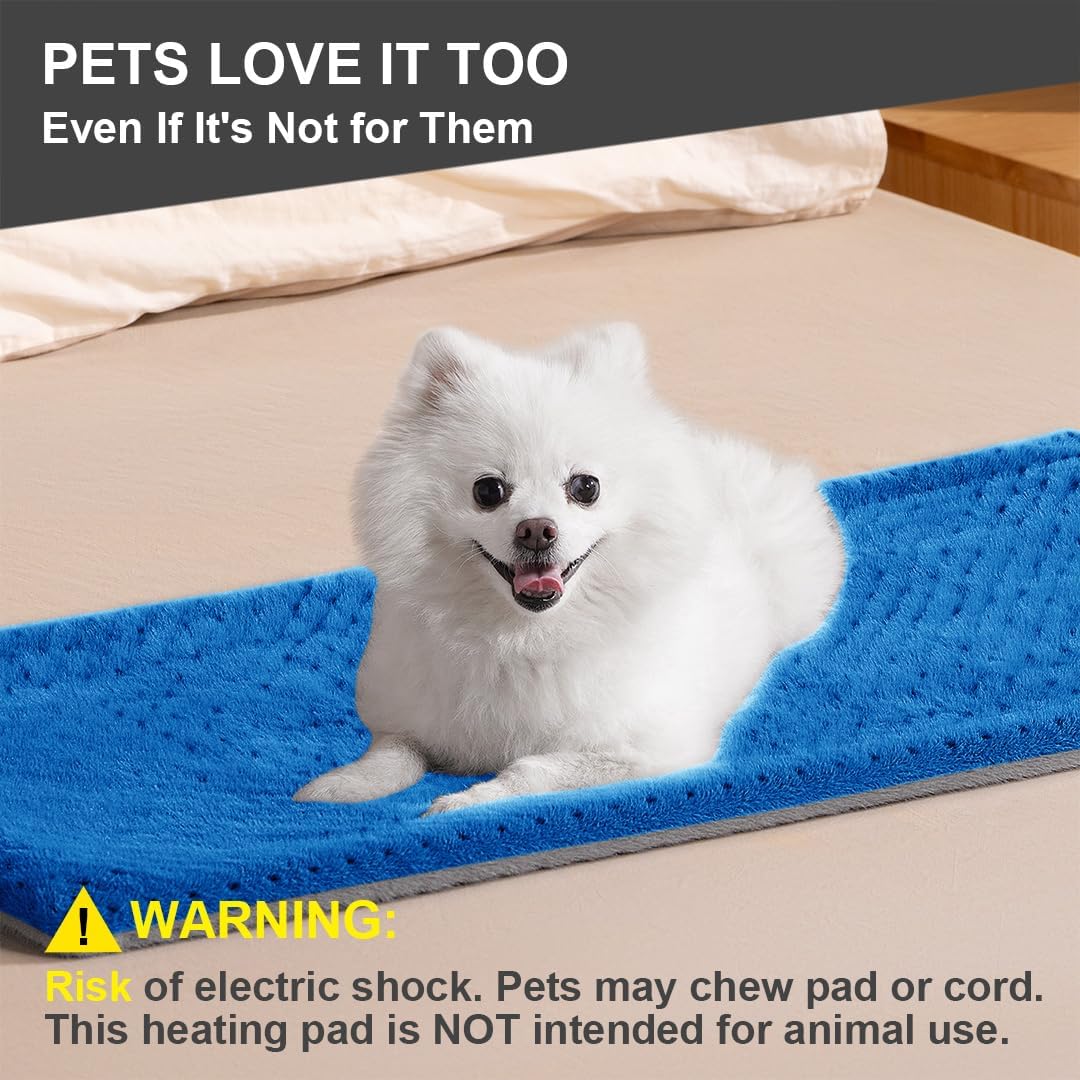 Boncare® 17"x33" Extra Large Heating Pad for Back Pain Relief & Period Cramp Without Auto Shut Off & 5 Auto Shut-Off Timers, 6 Heat Levels 9 Hr Auto Off and 12.6ft Cord Bed Foot Warmer(Blue)