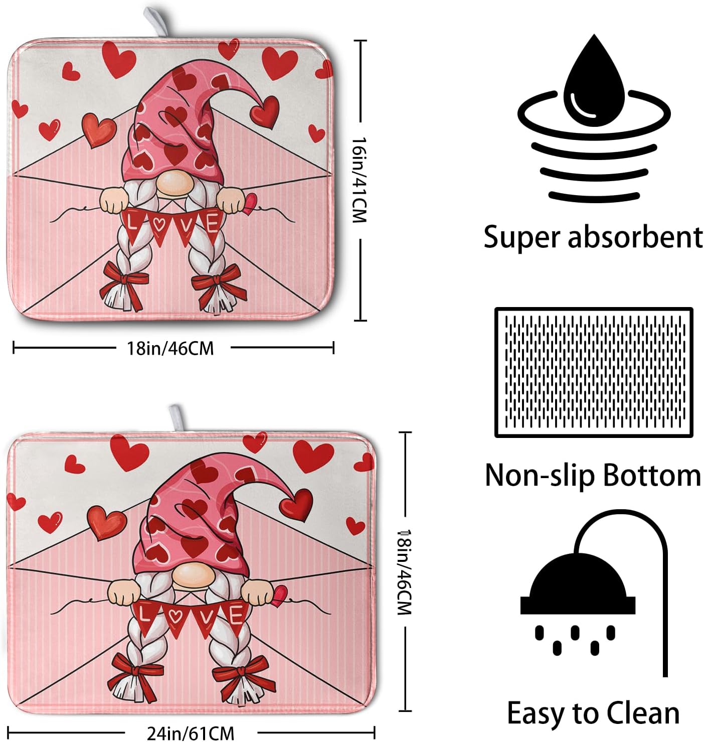 - 【Perfect Dimension】The Valentine's Day Love Letter dish mat size 18x24 inch, fits most counters. The Love Letter Gnome drying mat is soft pliable material easily rolls or folds up for storage, simply fold up and toss in a drawer or tuck it elsewhere, does not take up space.