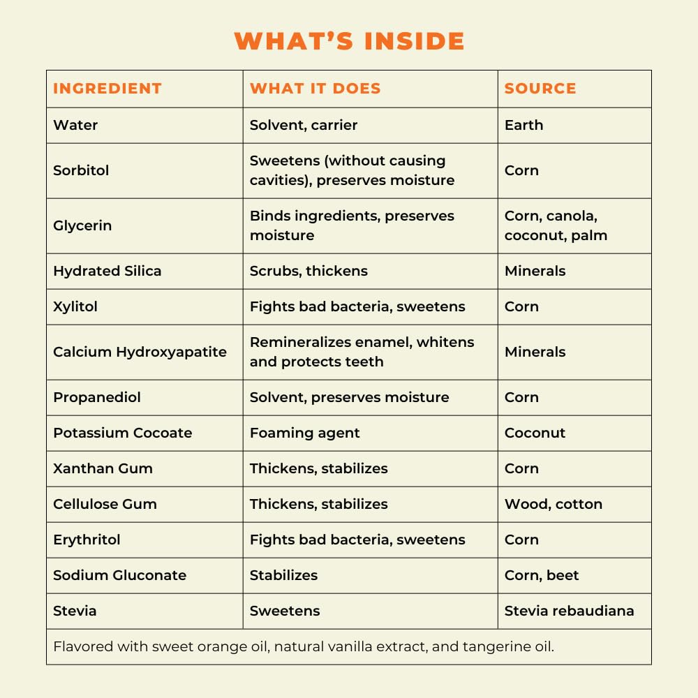 - SAFE FOR BABIES, TODDLERS, AND ADULTS ALIKE: From first tooth to full set, Happy Tooth is a natural toothpaste parents trust and kids actually love. Free from fluoride, SLS, and artificial fillers, our Vanilla Frosting flavor makes brushing a joy for all ages. It supports a balanced oral microbiome and is gentle enough for toddlers while still delivering whitening and remineralizing results adults appreciate. Backed by non-toxic, US-made standards for peace of mind.