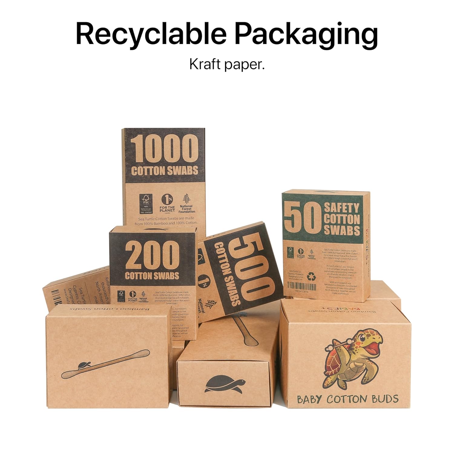 - PURE COTTON – Sea Turtle Bamboo Cotton Swabs are spun with organic cotton that is naturally durable, hypoallergenic, and chloride free for the most sensitive skin.