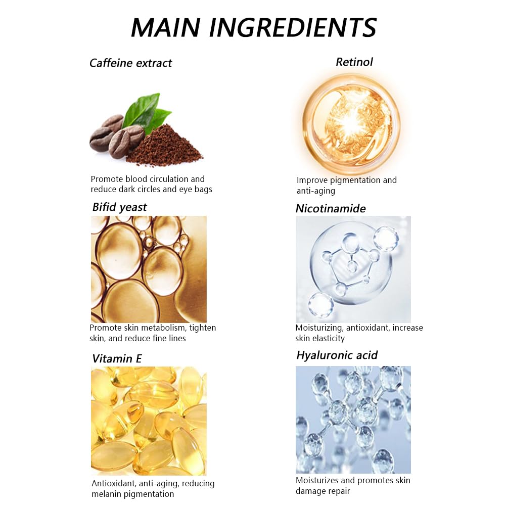 - Lightweight Formula: Our under eye serum is lightweight and quickly absorbs into your skin, leaving it feeling soft and hydrated, quickly reducing puffiness, fine lines and dark circles, smoothing and lifting the delicate skin around the eyes, making the skin more youthful Sleek and youthful.
