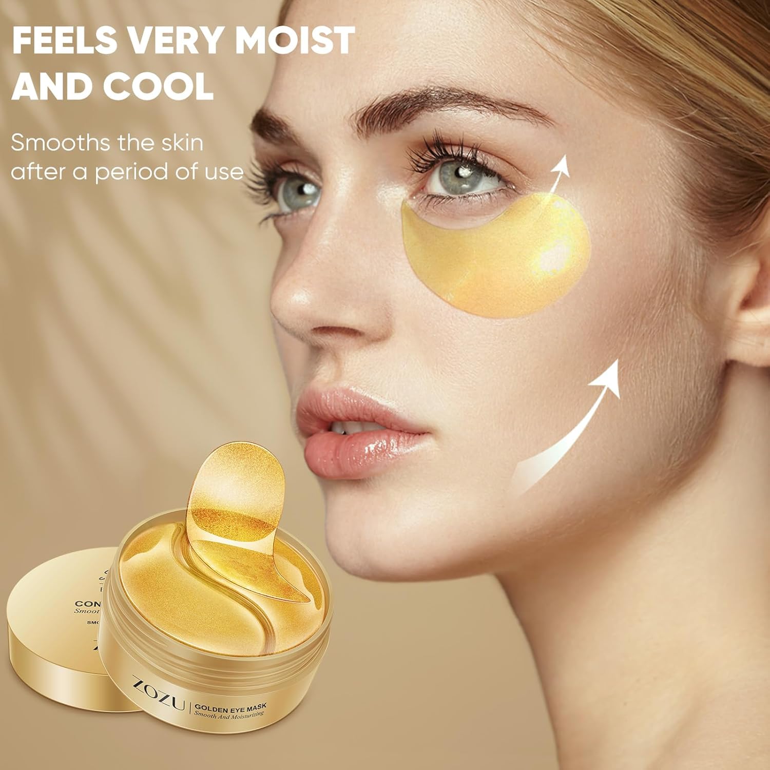 - 【Eye Masks for Men and Women】Whether you're looking for a more youthful appearance, wishing to get rid of dark circles under your eyes, or to reduce puffiness on special occasions, the Golden Under Eye Patch is an essential addition to your skincare routine. Our eye-shaped hydrogel patches are designed to adhere easily to the skin and effectively target the delicate area around the eyes for optimal, focused care!