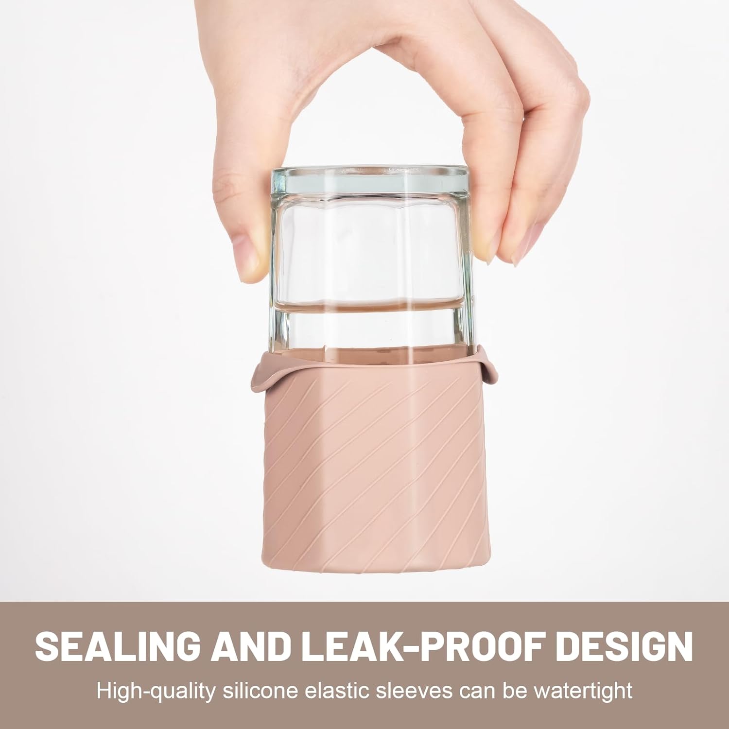 • EASY TO INSTALL: Put this leak-proof sleeve on bottles that are prone to leakage. It can be firmly fixed on the containers of toiletries and other beauty and personal care products. The silicone material can absorb the bottle to prevent leakage during travel and contamination of your Other items.