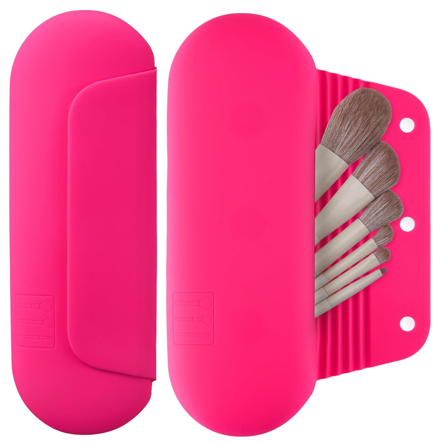 Silicone Makeup Brush Holder Travel Cosmetic Bag:Soft Portable Cosmetic Face Brushes Holder with Upgrade Anti-Fall Out Magnetic Closure, Large Travel Makeup Brush Case - Babbie Pink