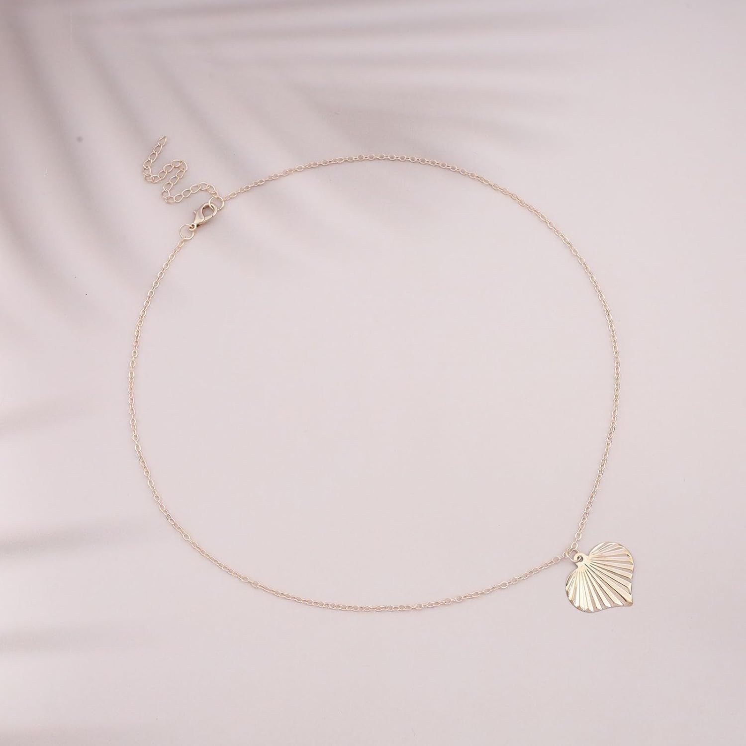 Boho Heart Pendant Necklace Gold Heart Necklace Vintage Heart Love Pendant Necklace Textured Heart Chain Necklace Minimalist Heart Charm Necklace Jewelry for Women and Girls