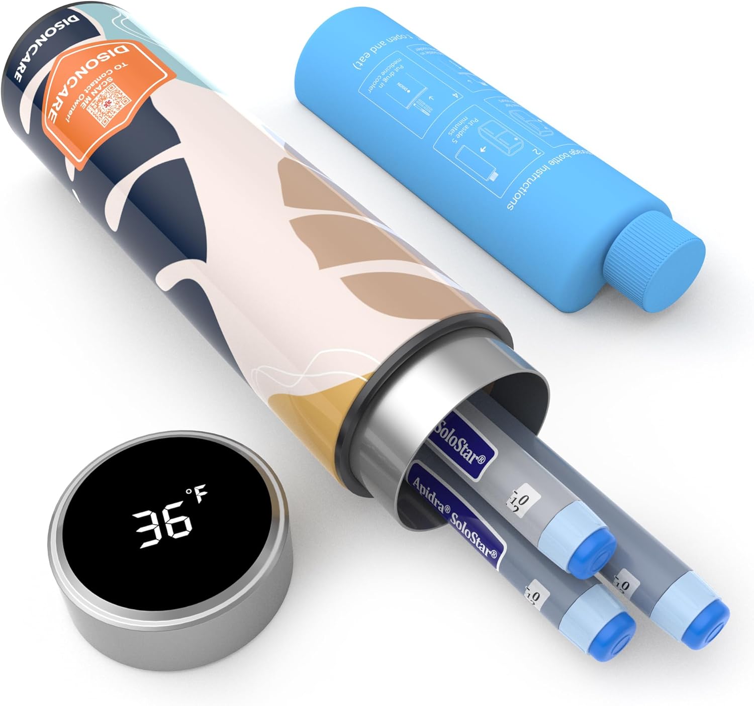 DISONCARE Odyssey 60H Insulin Cooler Travel case Digital Display Medication Cooler for Medicine Travel TSA Approved Ice Pack Diabetic Medical Cooler Diabetes Bag EpiPen with QR Medical Tag(Monstera)