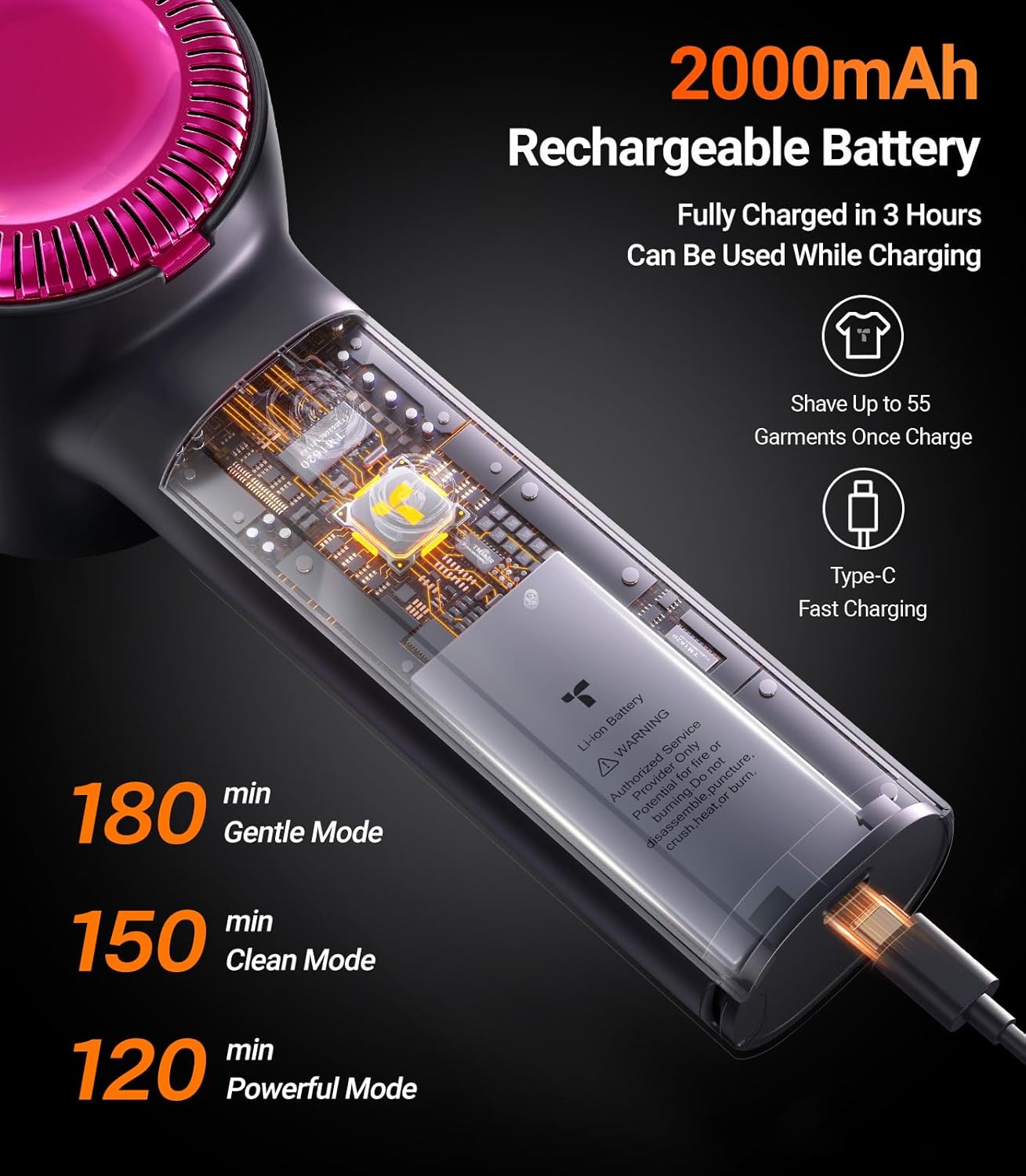 - ❤️ [Wireless Use & Use while Charging] 2H charging can support 5H of use. One full charge of this electric clothes shaver can clean 50 pieces of clothes. You can also use this pilling remover for clothes while charging. Whenever you need it, it can always be ready for use.