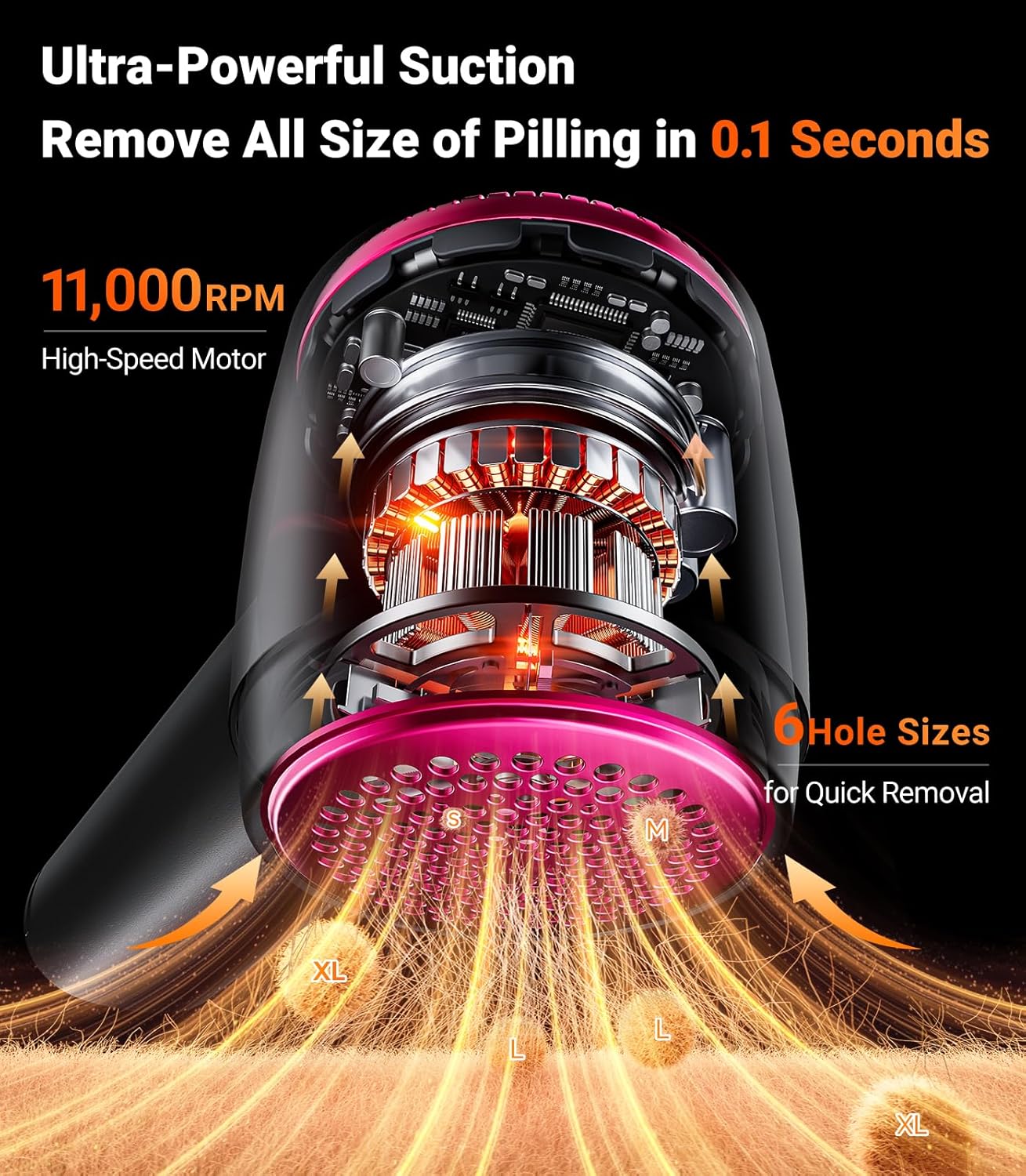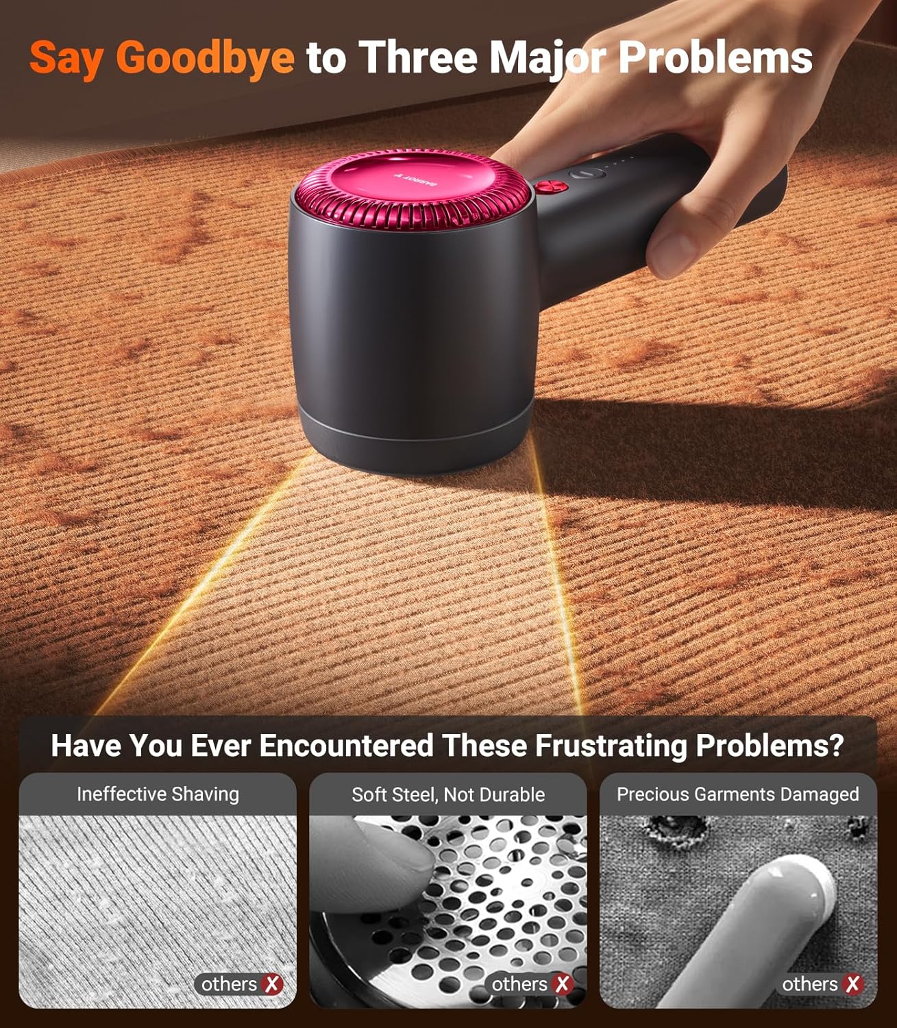 - 🧣 [Triple Safety Protections] Protect your luxury clothing with triple safety protection mode. Once you open the net cover and lint container, the lint shaver rechargeable will automatically cut off the power to ensure the fabric's good condition and your safety. The electric lint remover for clothes maintains a safe distance between fabric and blades with the suck-shave technology, preventing clothing damage. Revitalize the fabrics in your cozy home with a brand new freshness.