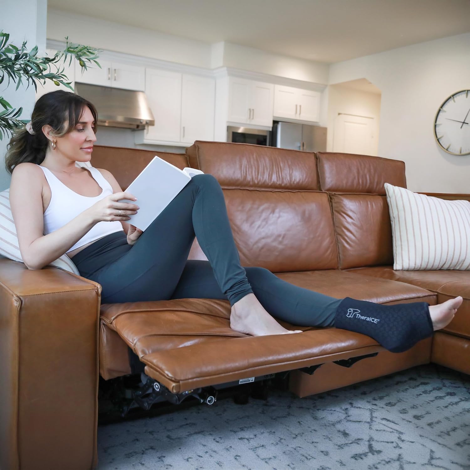 TheraICE Ankle Ice Pack Wrap PRO for Swelling & Sprained Ankle Brace for Women & Men, Cold Therapy Support Compression Socks, Plantar Fasciitis & Achilles Tendonitis Relief, Sore Feet & Heel