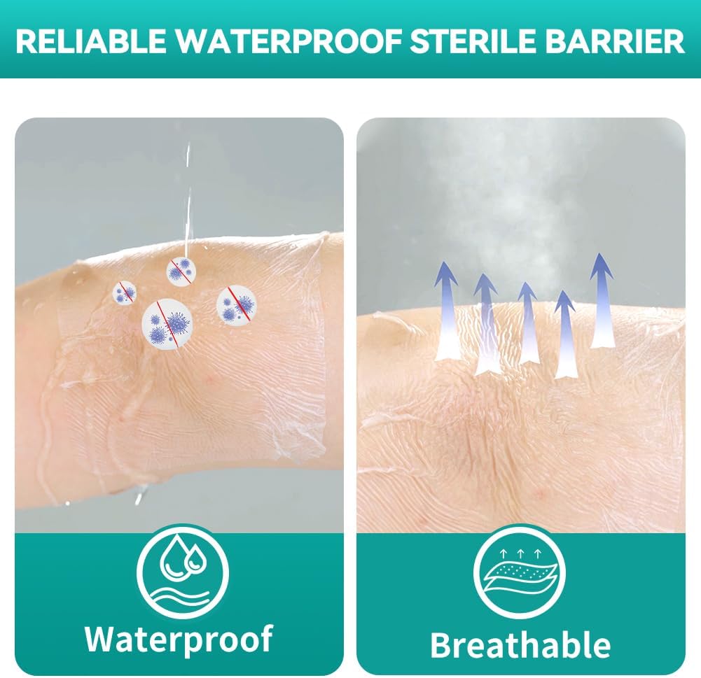 - Reliable Waterproof Sterile Barrier - Excellent waterproof performance is impermeable to liquids brings safe care to wounds, you can showering or swimming as usual