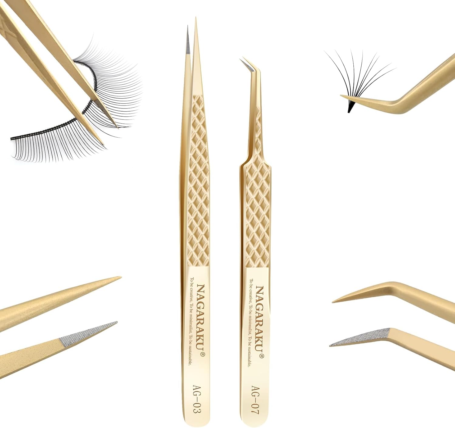 - 【AG-03+AG-07】Set of straight tweezers and curved tweezers. These handcrafted tweezers are made of high-strength stainless steel, which is resistant to most acids and other corrosive agents. We give each tweezer a box to protect the tweezers.