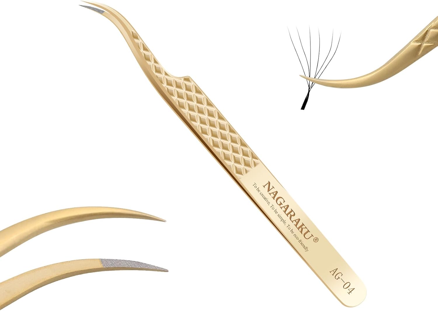 NAGARAKU Precision Fiber Tip Grip Tweezer for Eyelash Extensions Diamond Handle Anti-Static Anti-Slip Premium Gold Stainless Steel Eyelashes Tweezers Supplies with Box(C Curved Tip Tweezer AG-04)