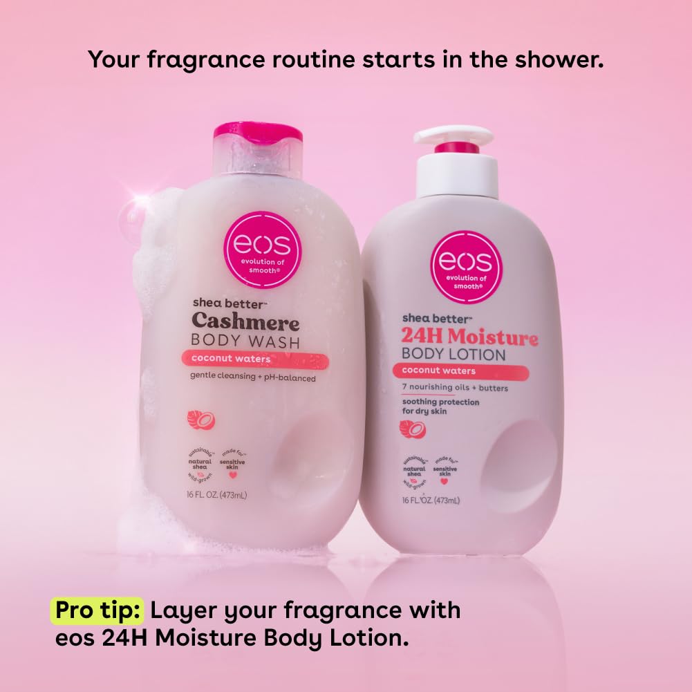 eos Shea Better Cashmere Body Wash, Coconut Waters, Moisturizing, pH Balanced Body Wash, Creamy Gel Formula, Paraben & Phthalate Free, Sensitive Skin, 16 fl oz