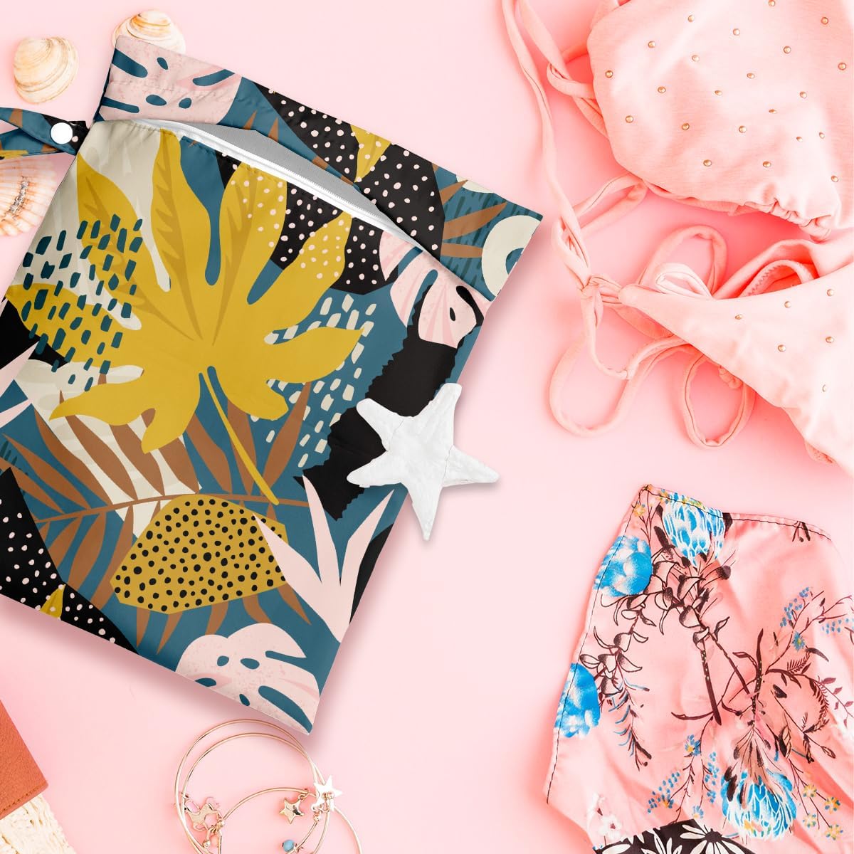 Wet Bag, Wet Dry Bag, Wet Bag for Swimsuit, Travel, Beach, Pool, Diapers, Dirty Yoga Gym Clothes, Makeup Bag, Waterproof Tropical Palm Leaves Decor Jungle Palm Leaf Favors