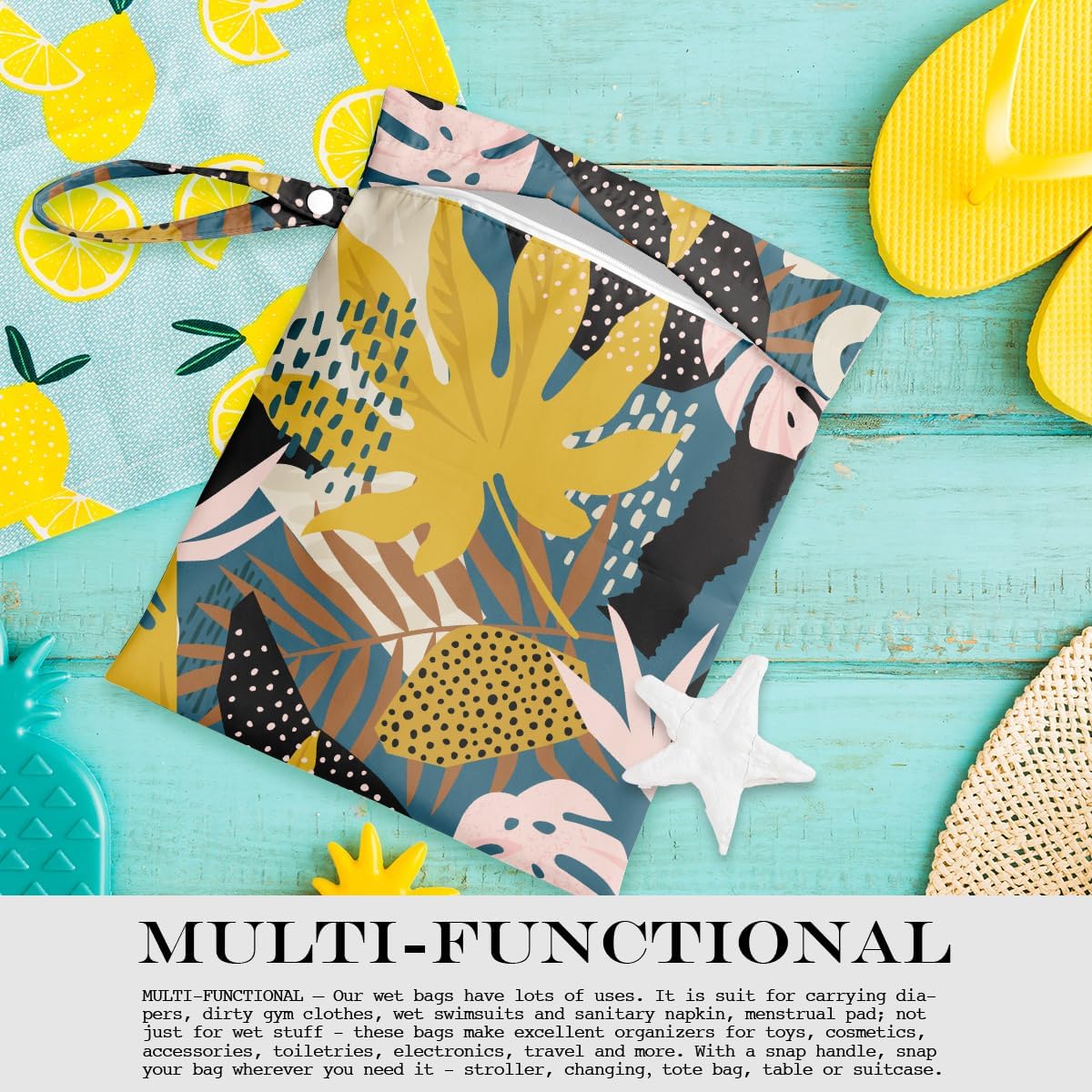 - MULTI-FUNCTIONAL – Our wet bags have lots of uses. It is suit for carrying diapers, dirty gym clothes, wet swimsuits and sanitary napkin, menstrual pad; not just for wet stuff - these bags make excellent organizers for toys, cosmetics, accessories, toiletries, electronics, travel and more. With a snap handle, snap your bag wherever you need it - , changing,tote bag, table or suitcase.