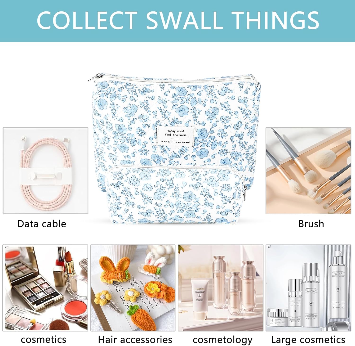 - TRAVEL MAKEUP BAG SET COQUETTE FOR WOMEN:You will get a large makeup bag and a small cosmetic bag (makeup brush bag).These floral makeup pouch is lovely and fashionable, the texture is lightweight and soft. These floral makeup pouch is cute and fashionable, lightweight and soft, easy to carry