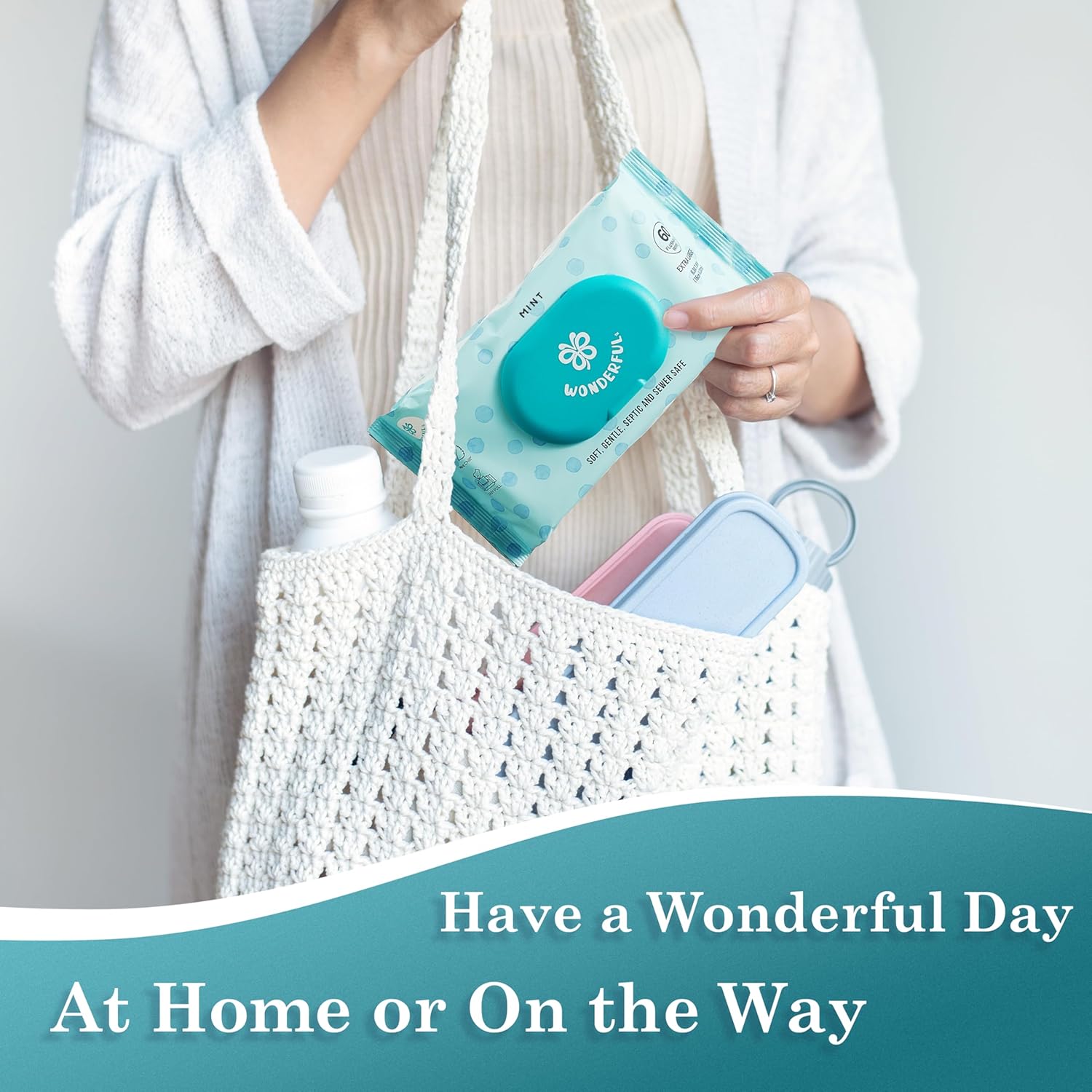 - 🌿MINT & PREMIUM QUALITY: Wonderful Flushable Wipes are great alternative or supplement to toilet paper. Our butt flushable wipes are made with superb quality of plant-based fibers, providing a refreshing, clean feel and your butt can stay cool. Designed for adults, kids, feminine, babies, dudes use, pets safe.