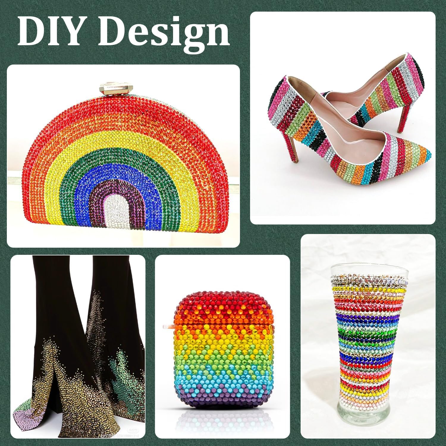 • WIDE APPLICATION -- These sparkling iridescent resin crystals are perfect for creating dazzling looks. Use them for bedazzling DIY crafts like shoes, tumblers, mugs, bottles, phone cases, popsockets, scrapbooks, photo frames, diamond paintings, greeting cards, bags, glasses, guitars, keychains, hats, masks, hair clips, bracelets, wristbands, clothing, wedding dresses, and more. Apply it to what you want to bling!