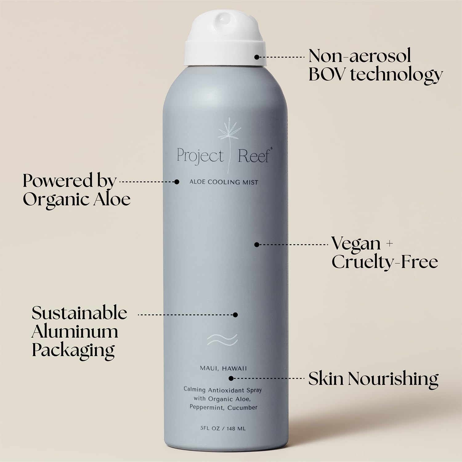 Non-Aerosol Aloe Cooling Mist – Vegan, Ocean Friendly & Hydrating After-Sun Spray with Organic Aloe Vera, Peppermint & Cucumber – Natural Sunburn Relief & Daily Skin Refreshment, 5 fl oz