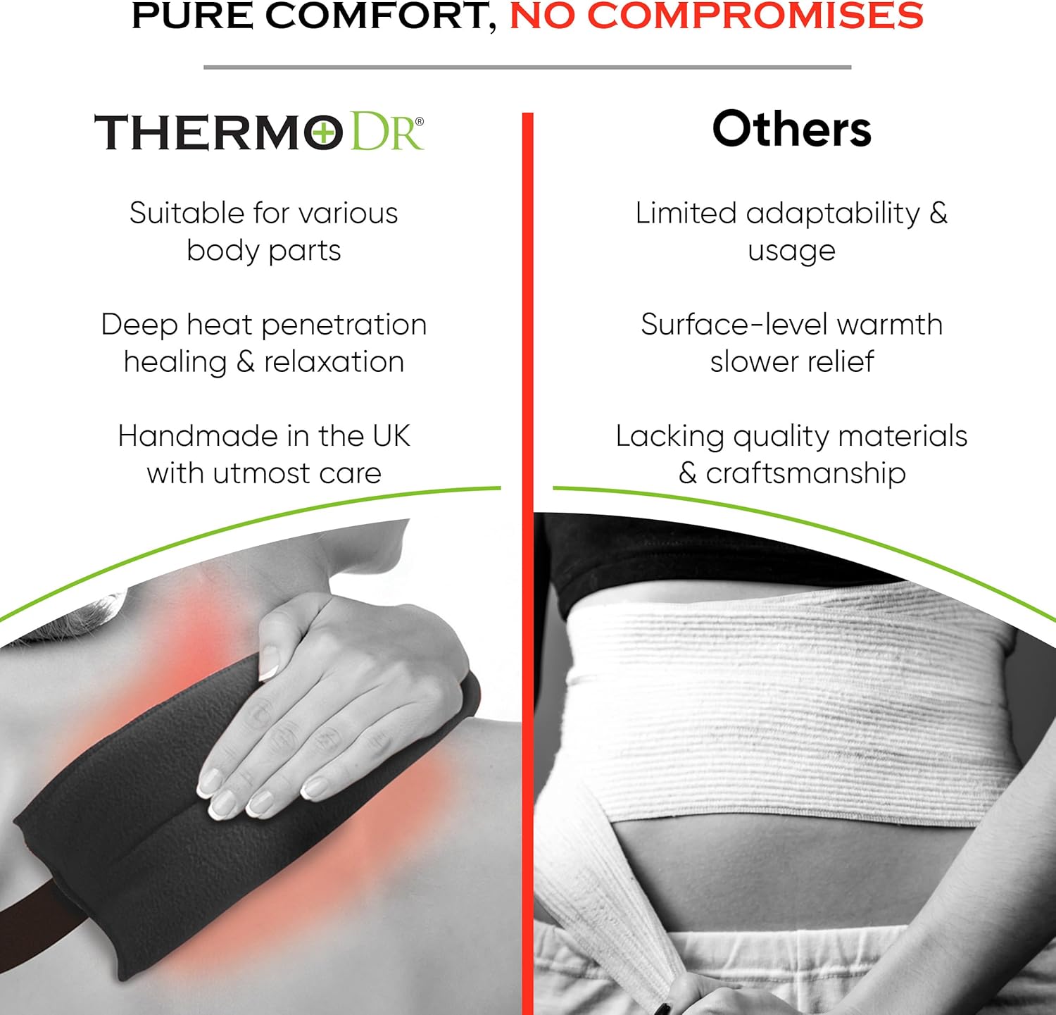 - Soothe Your Body in Warmth: Experience relaxation like never before with ThermoDR’s microwave heating pad for neck and shoulders. Featuring a 2-channel design, this heating bag with elasticated strap ensures equal heat distribution, ideal for moments when you seek immediate warmth and comfort.
