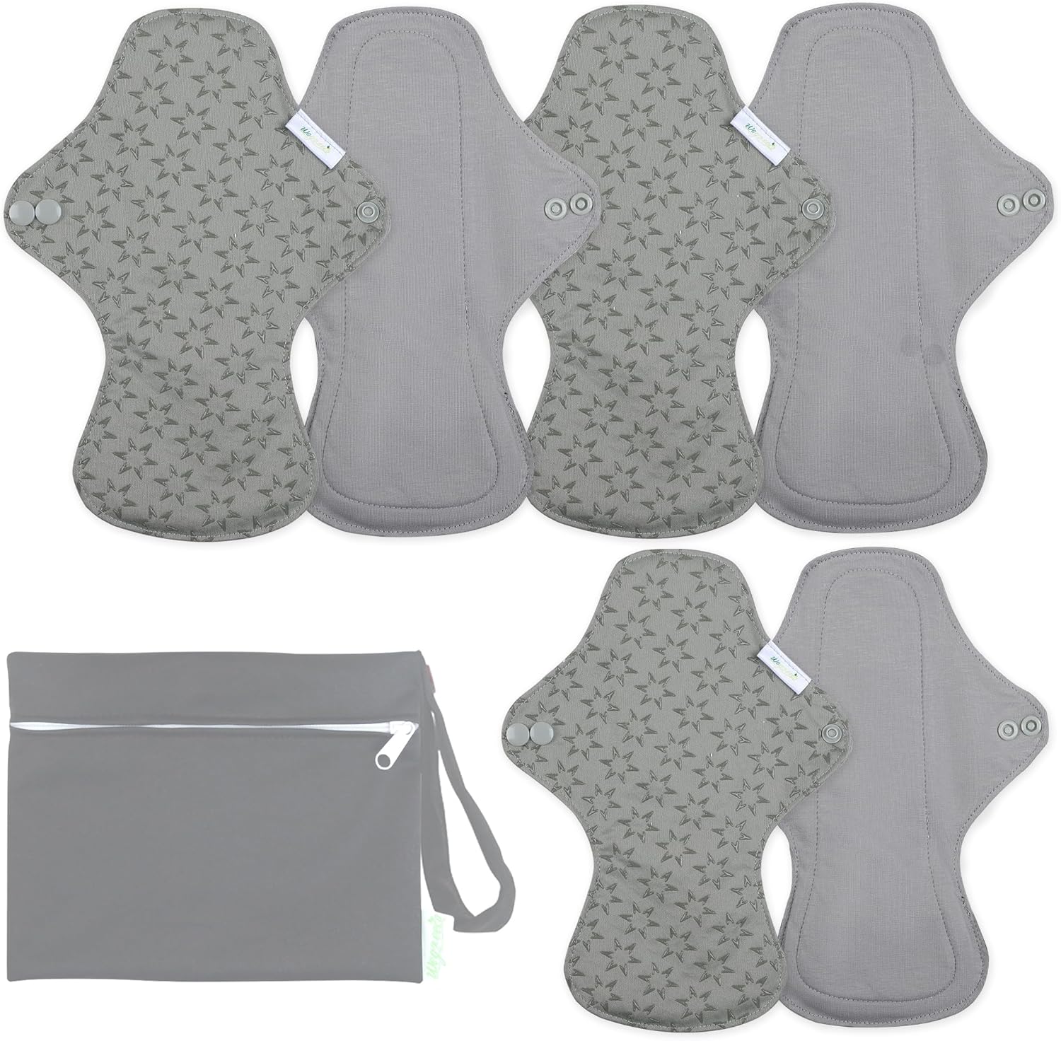 wegreeco 6 Pcs Reusable Menstrual Pads, Ultra Absorbent Cloth Pads for Heavy Flow, Sanitary for Teens, Women, Nonslip, Grey Inner, Grey Outer, X-Large