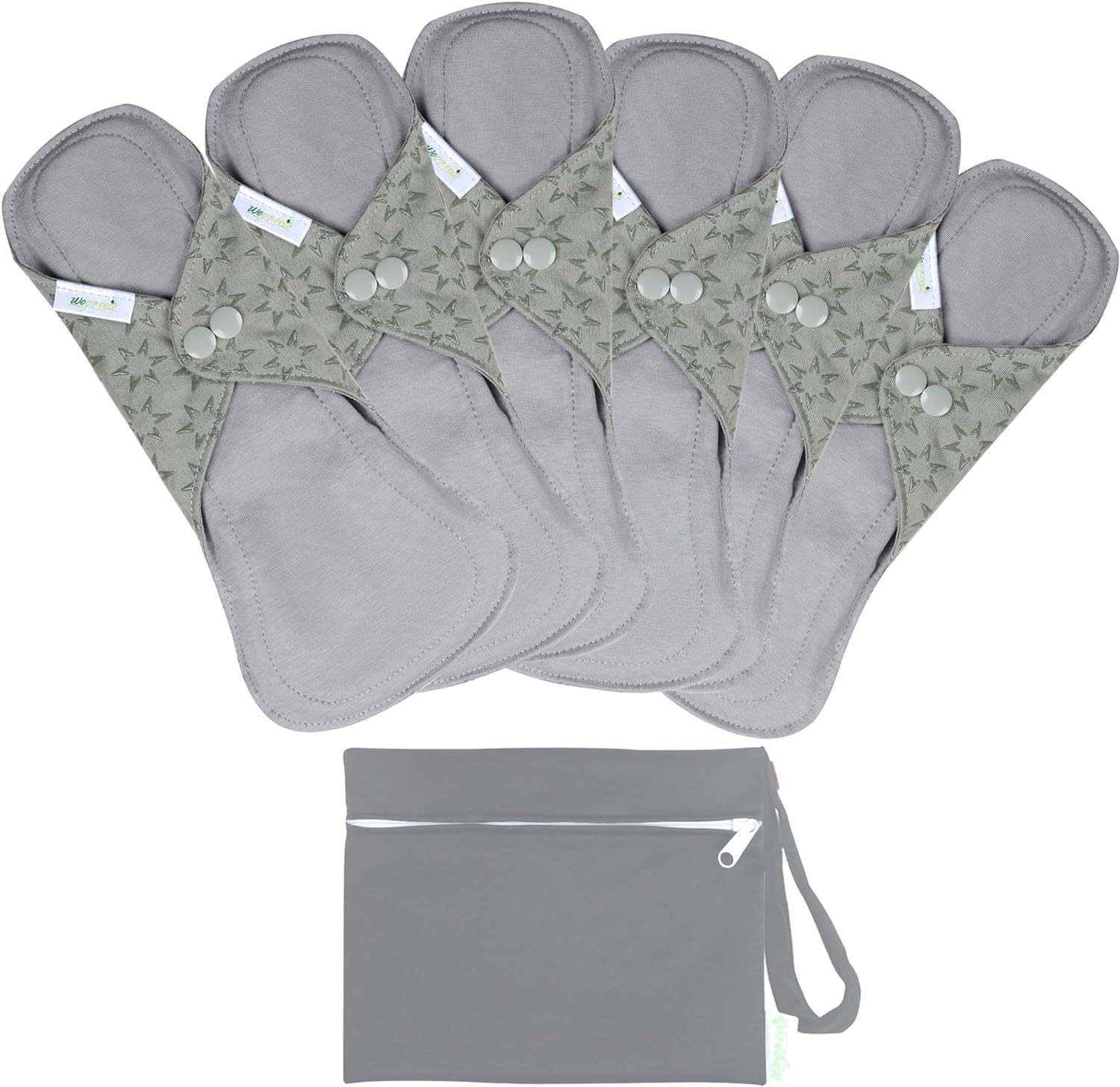 wegreeco 6 Pcs Reusable Menstrual Pads, Ultra Absorbent Cloth Pads for Heavy Flow, Sanitary for Teens, Women, Nonslip, Grey Inner, Grey Outer, Small