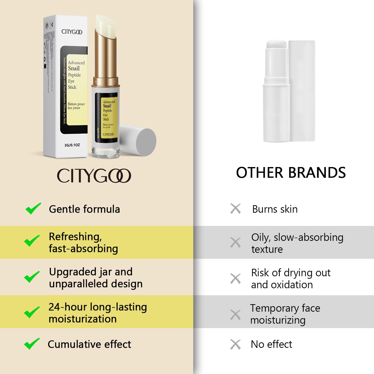CITYGOO Snail Eye Stick for Dark Circles: Anti Wrinkle Snail cream Eye Puffiness Treatment (Snail Eye Stick)