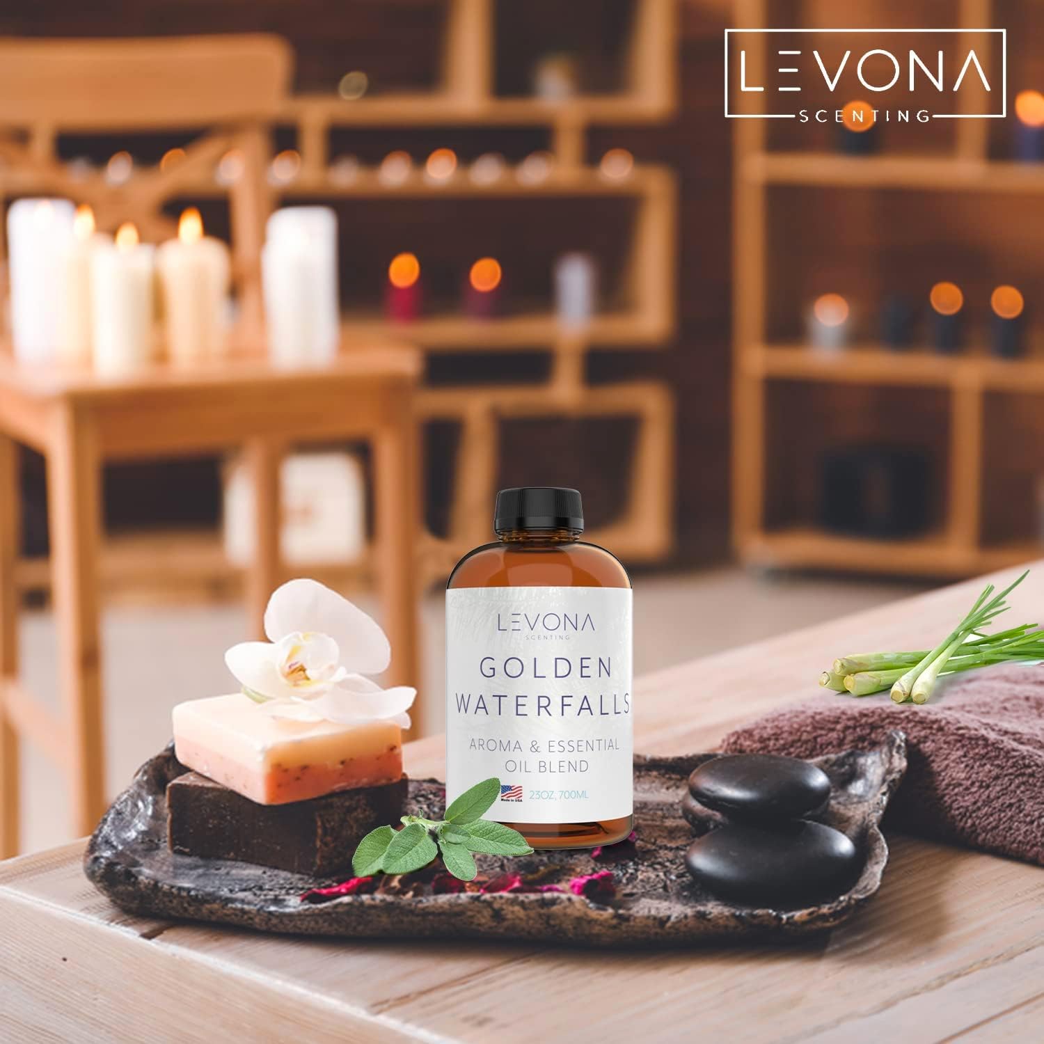 Levona Scent Pure Essential Oils for Diffusers for Home, Hotel & Office - Golden Waterfalls Essential Oils for Diffuser Oil and Humidifiers - Home Luxury Scents - Scented Fragrance Oil Blends - 700 ml