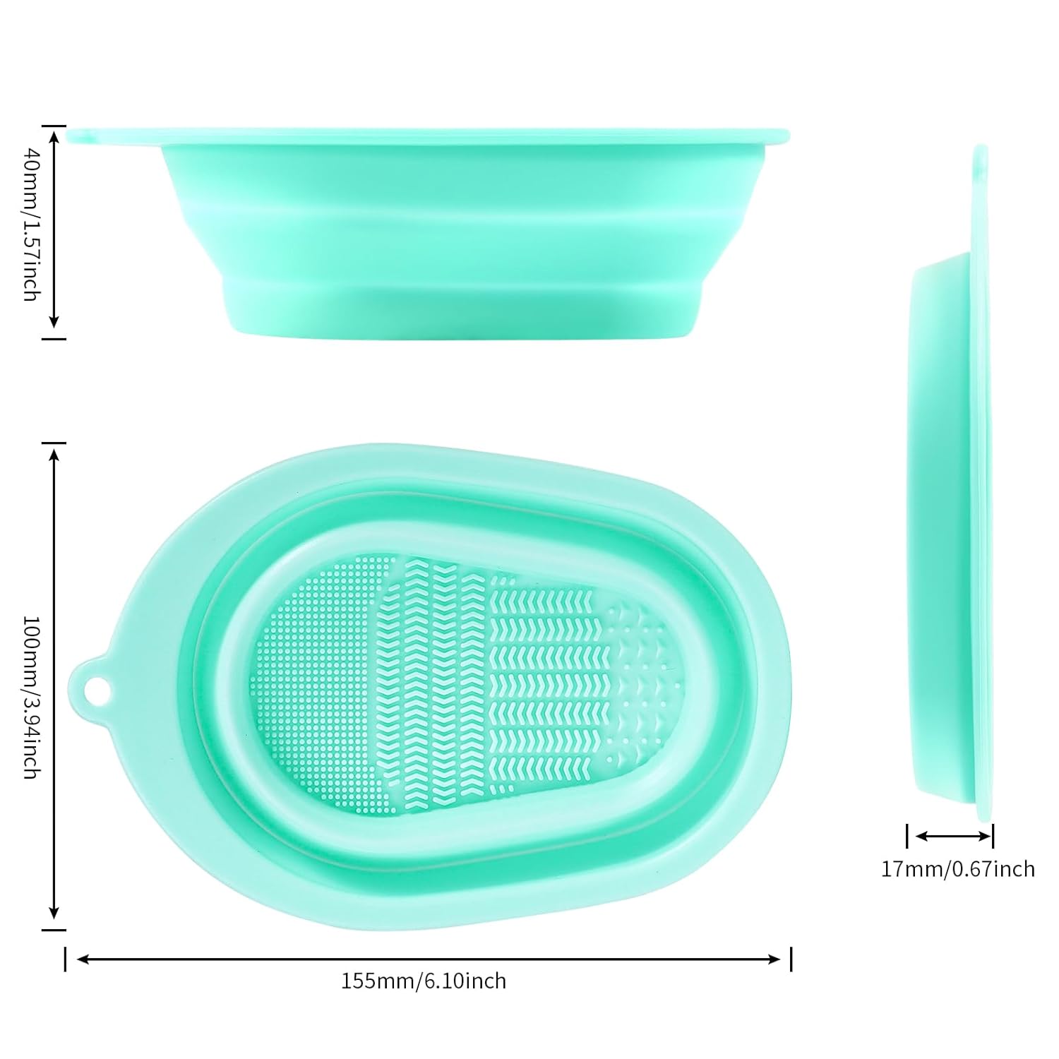 - UNIQUE DESIGN: Foldable design, this makeup brush cleaning bowl can be used as a scrubbing pad or as a container with cleaning fluid and water to thoroughly clean used makeup brushes and makeup sponges, etc.