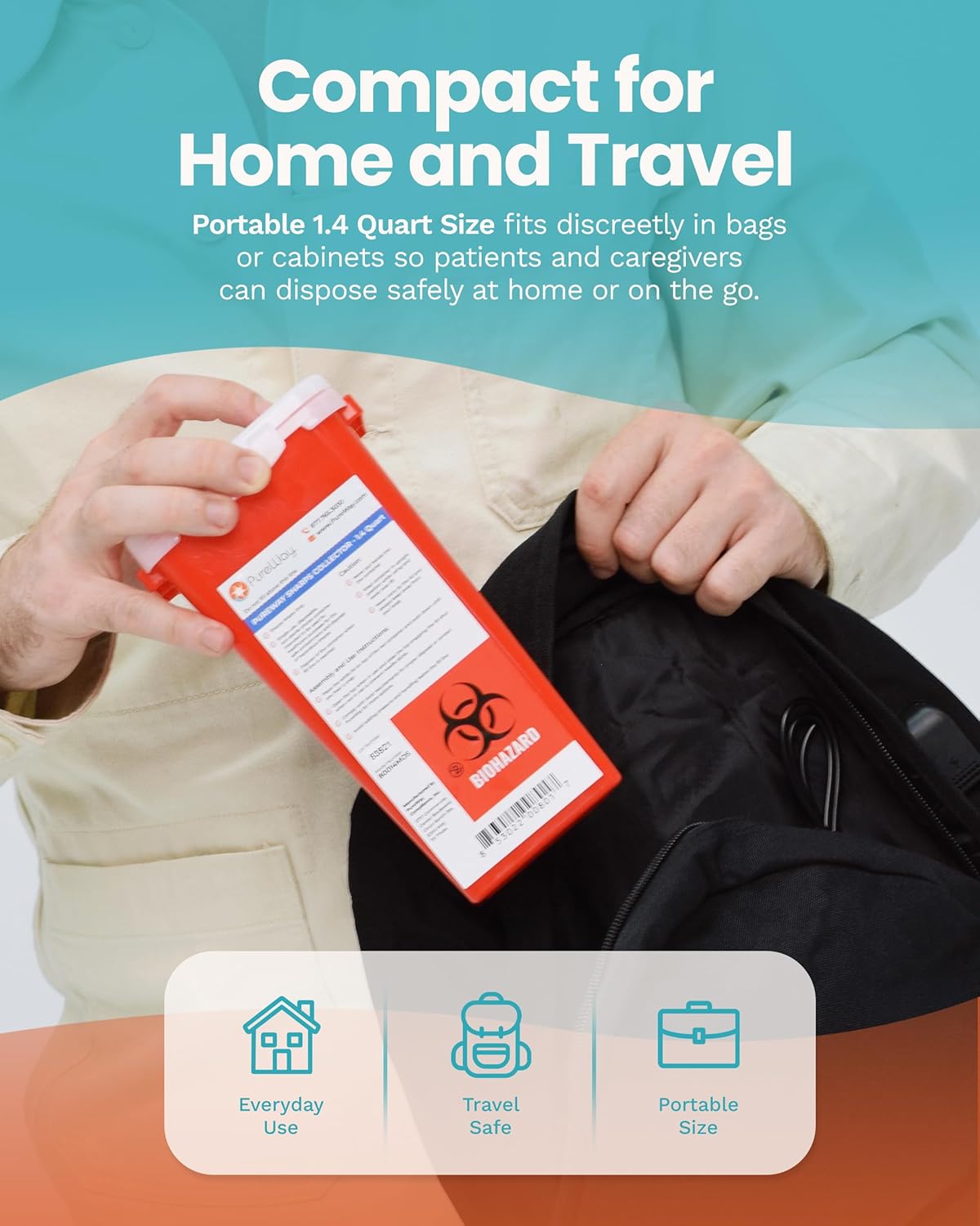 1.4 Quart MailBack Sharps Disposal Container – Secure Needle Box for Safe Medical Waste & Used Syringe Disposal | Sharps Container for Home Use, Travel, Clinics, and Professional Settings