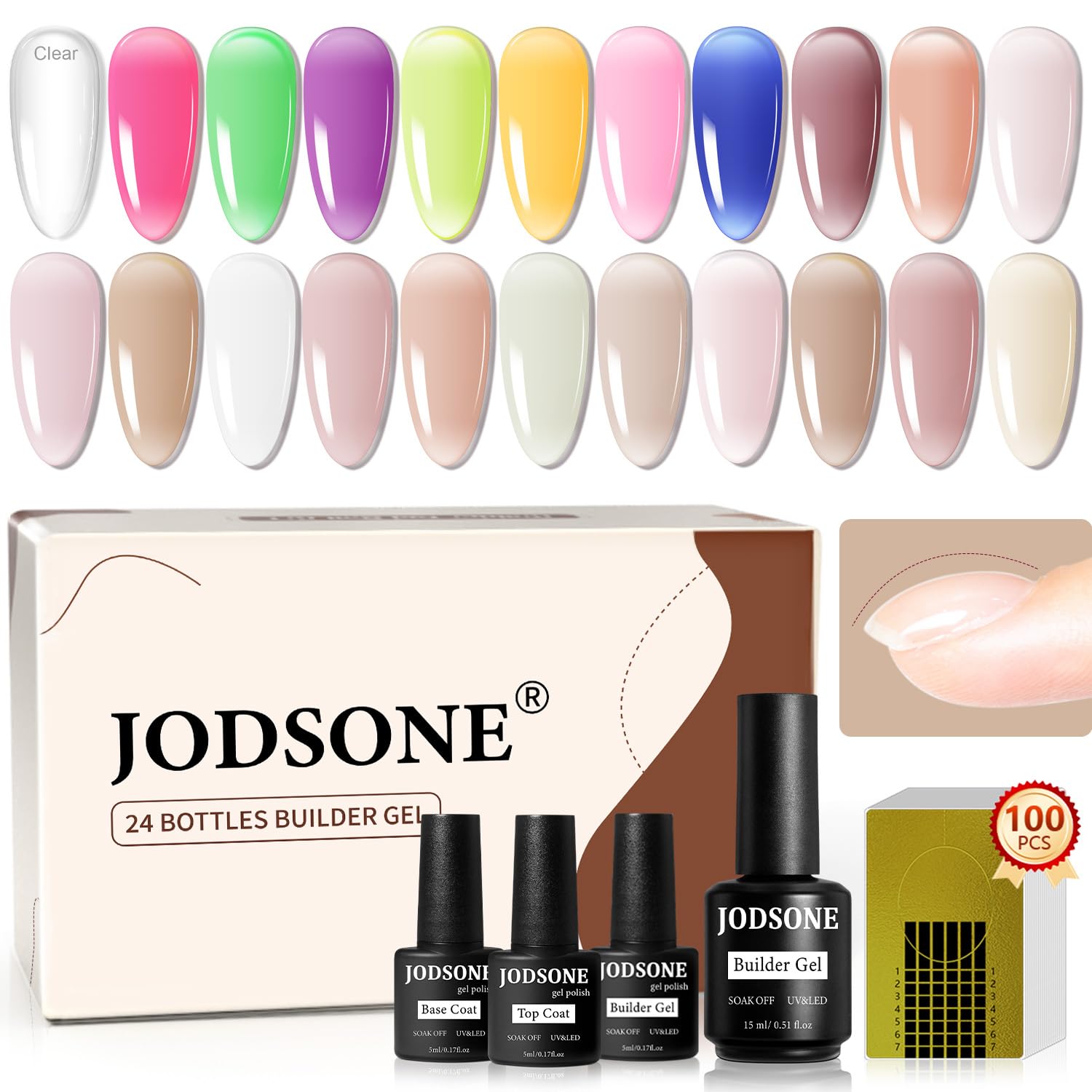 JODSONE Builder Color Gel Top Coat Base Coat Extension Gel 24 PCS Kit Long Lasting High Gloss Gift For Women