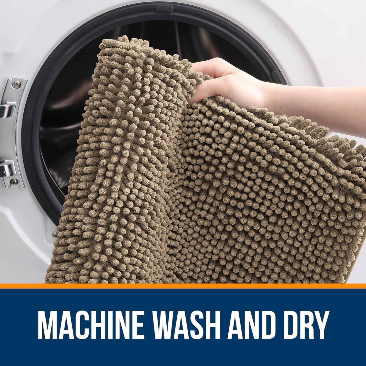 OLANLY Bathroom Rugs 24x16, Extra Soft Absorbent Chenille Bath Rugs, Rubber Backing Quick Dry, Machine Washable Bath Mats for Bathroom Floor, Tub and Shower, Home Decor Accessories, Tan