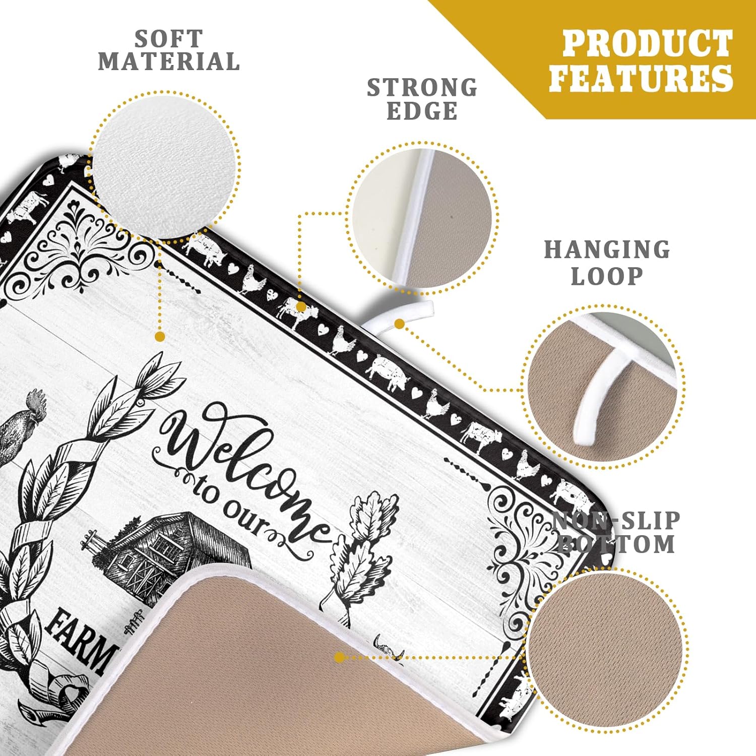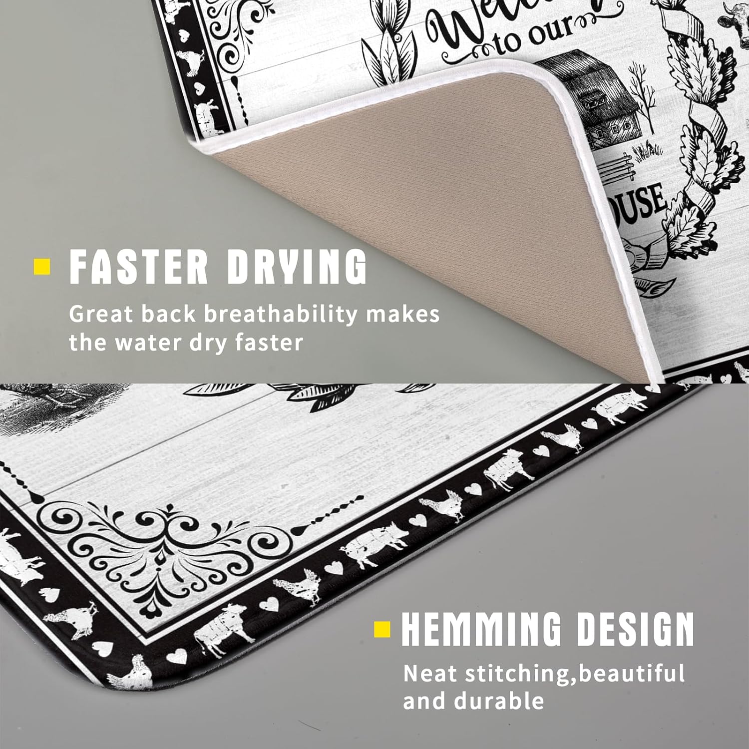 Farm Animal Dish Drying Mat 16x18 Inch Welcome to Our Farmhouse Microfiber Dish Drainer Pads Absorbent Fast Dry Kitchen Accessories