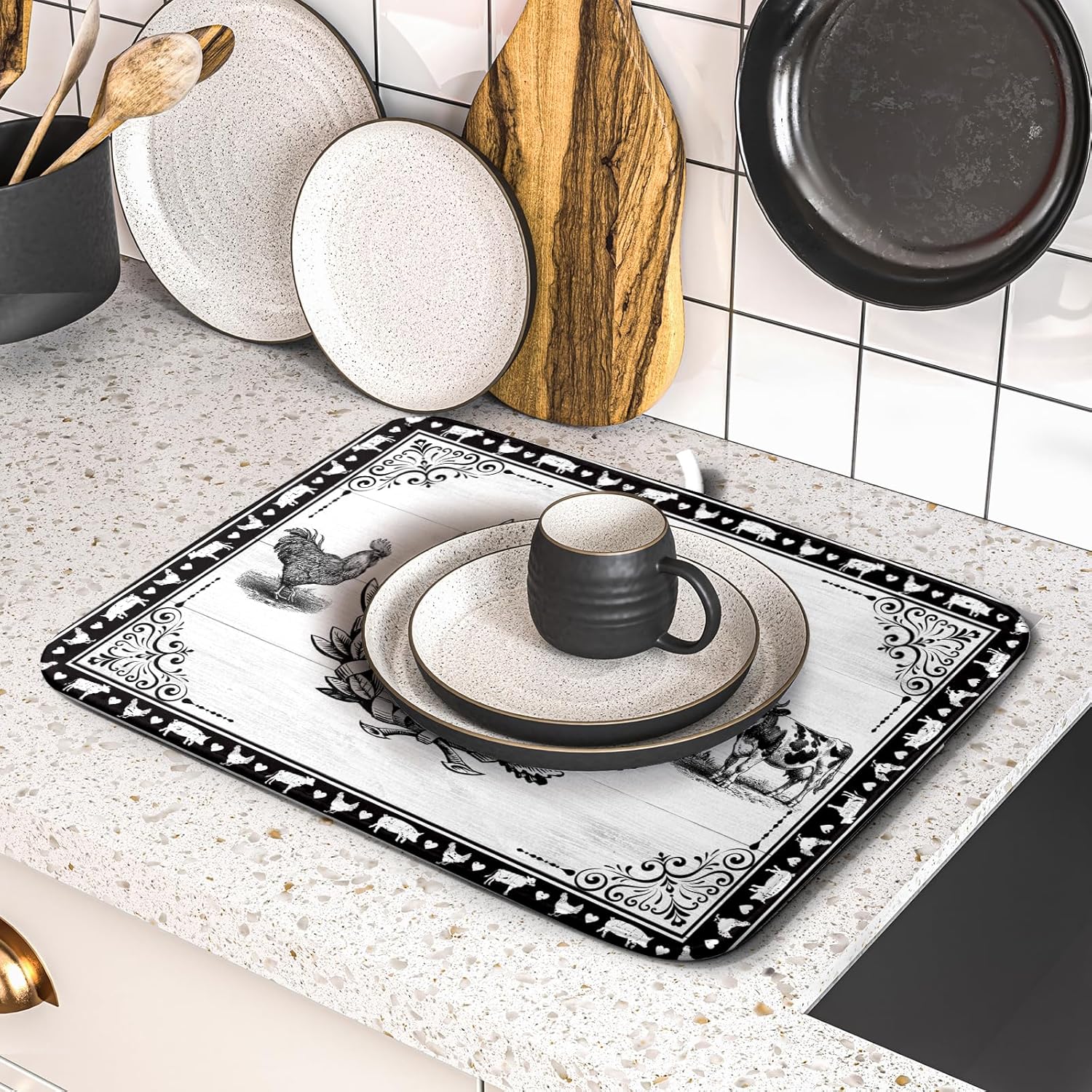 - 【Protect Tableware】Place your dishes on it or under dish racks, the country animal dish mat prevents bowls, glassware, and more tablewares from being scratched or worn, can be used as dish drying mat, sink mat, dishes drainer mats to keep the countertop dry and tidy.
