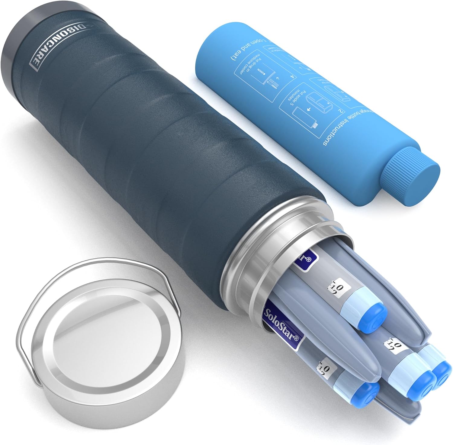 DISONCARE Intercontinental 74H 7 Insulin Pens Cooler Travel Case Medical Travel Diabetes Medicine For Traveling TSA Approved Ice Pack Medication Diabetic Gifts With QR Medical ID(Navy Blue)