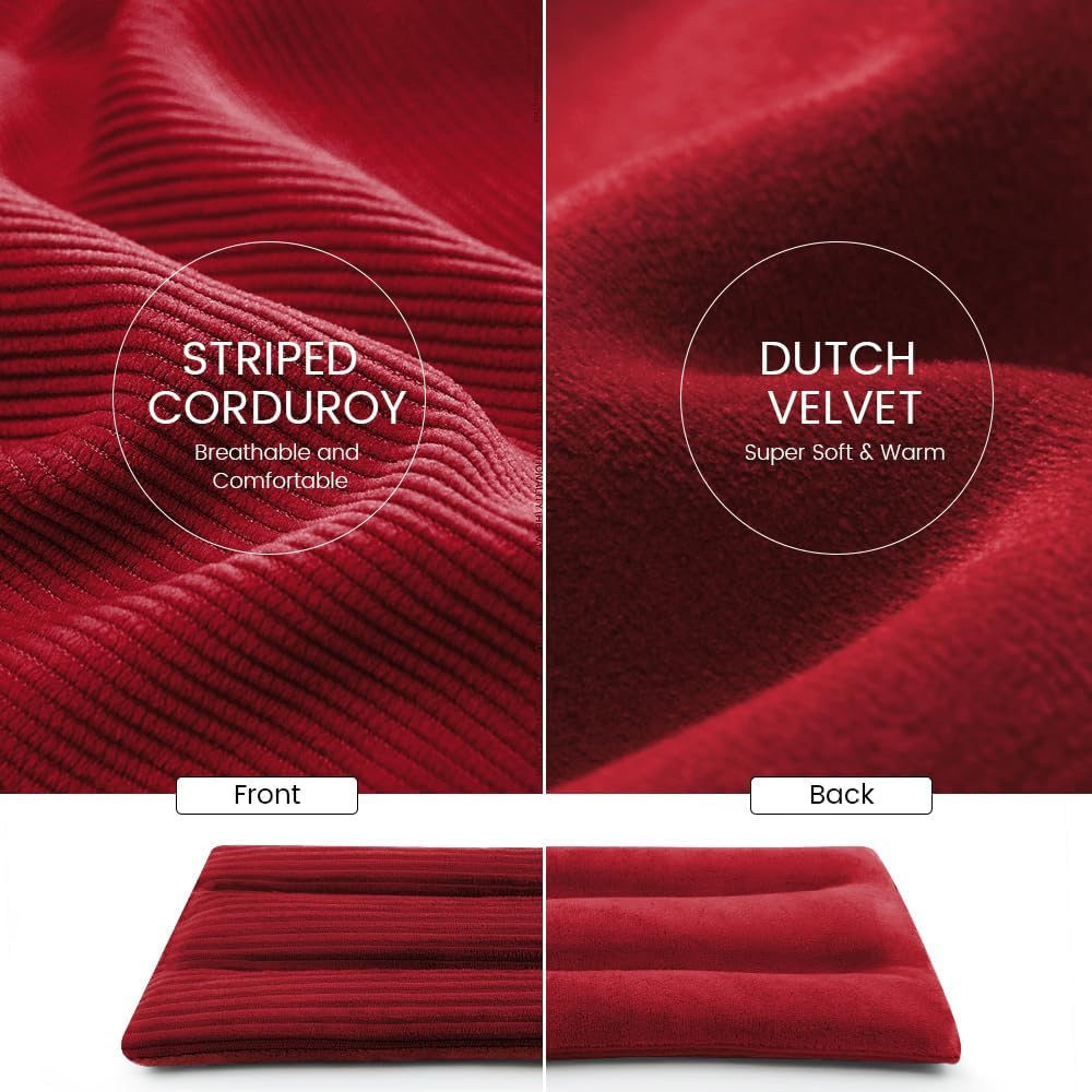 - 【Double Side Fabric Design Microwave Heating Pad】The heat can be evenly distributed on the bean bag and maintain long-lasting heat. Thanks to the interval cell design, it can be well fixed in the position of the filling. Super soft dutch velvet on one side to gently hug your skin and provide moist warmth, while the striped corduroy on other side give you a different comfortable touch.