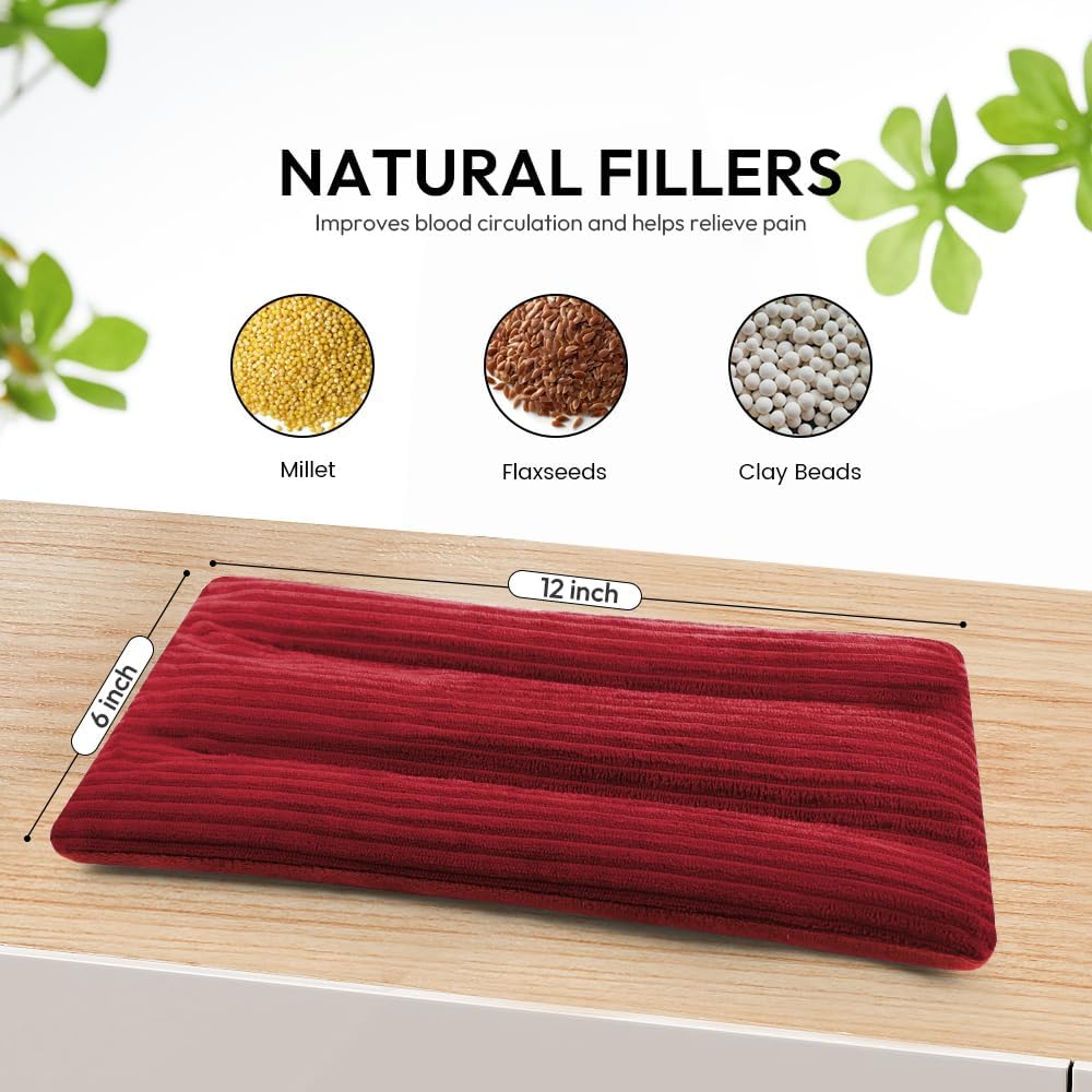 - 【Moist Heating Pad Microwavable with Natural Material】Microwave heating pad is filled with flaxseed, millet, clay beads that are unscented and retain heat more durable and effective, providing longer comfortable when heated.