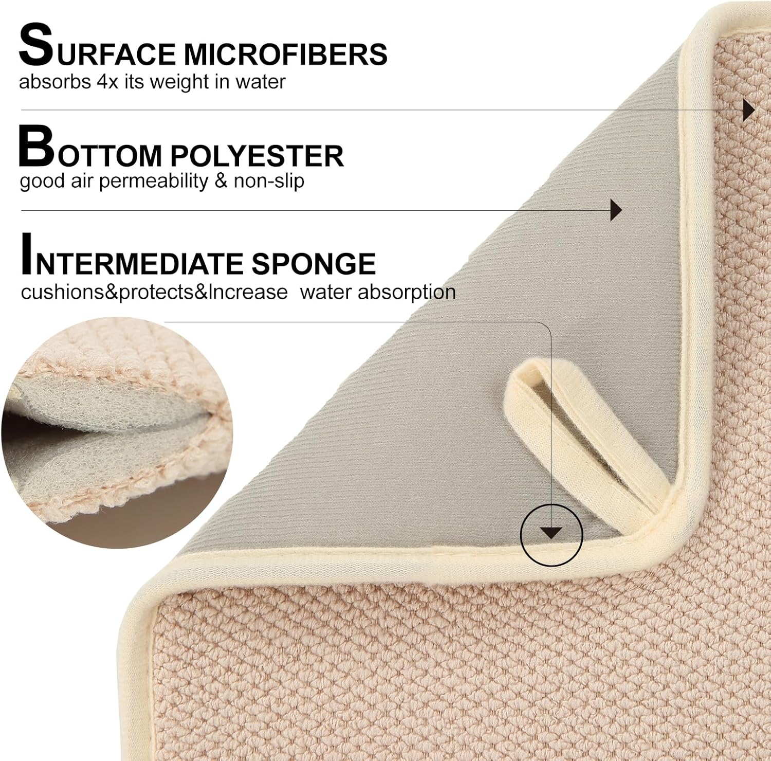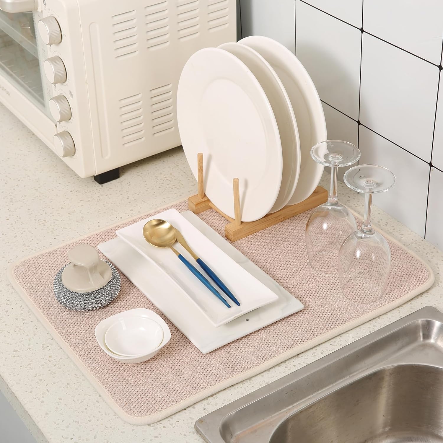 2 Pack Microfiber Dish Drying Mat for Kitchen Counter,Ultra Absorbent Dish Drainer Mat ,Dish Drying Pad ,Dish Rack Mat 20×15 Inch (Beige)