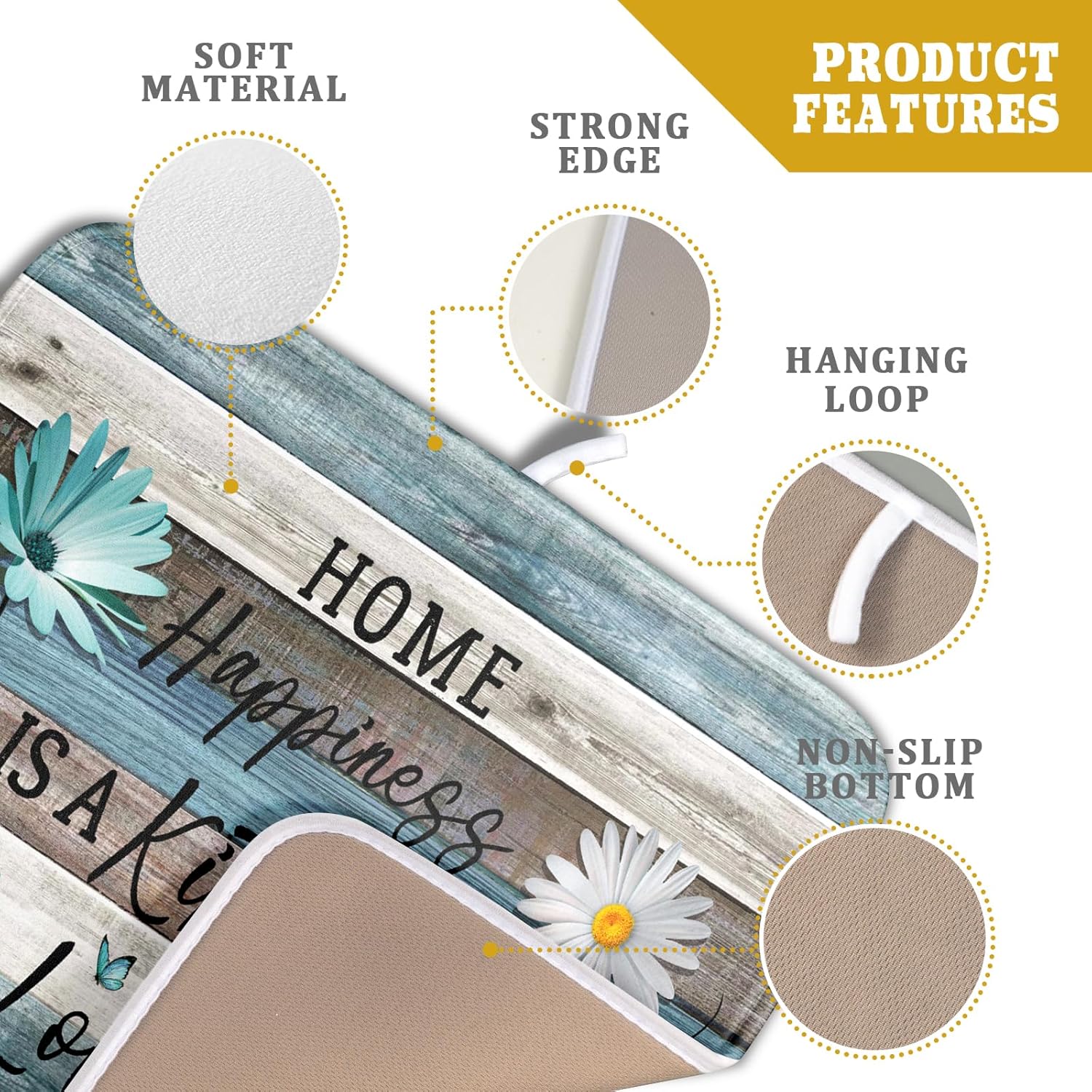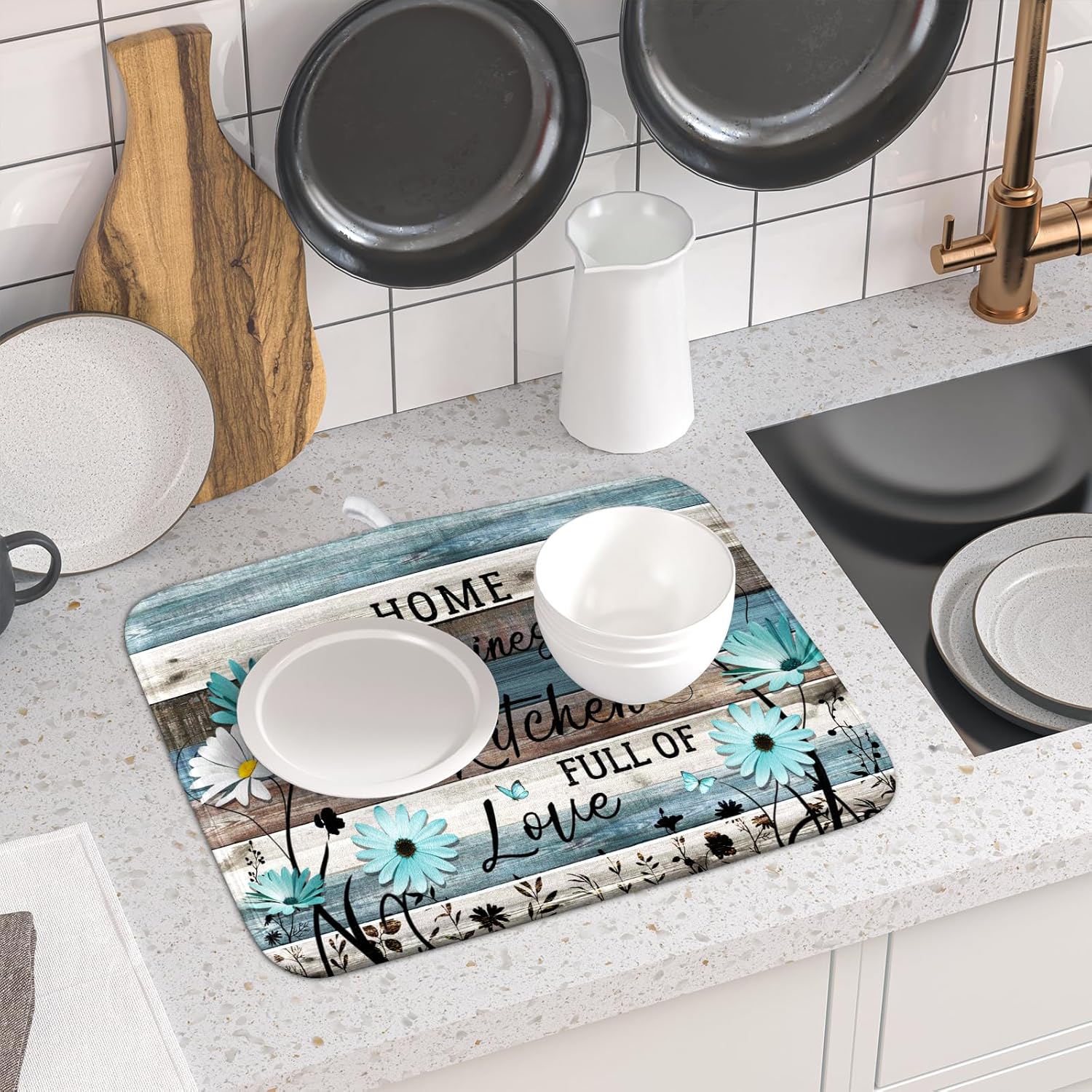 Daisy Floral Dish Drying Mat 16x18 Inches Rustic Wood Microfiber Absorbent Reversible Dish Draining Pad Fast Dry Kitchen Accessories