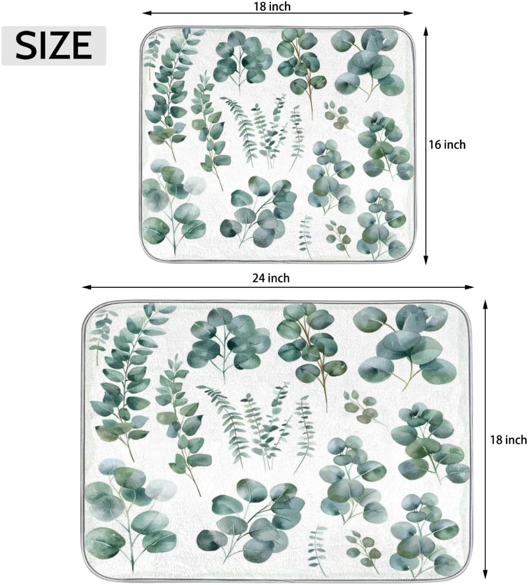 Hexteria Dish Drying Mat for Kitchen Counter Dish Mat Pad Absorbent Microfiber Kitchen Drying Mat Dish Drainer Rack Mat, 18x24 Inch, Eucalyptus Leaves