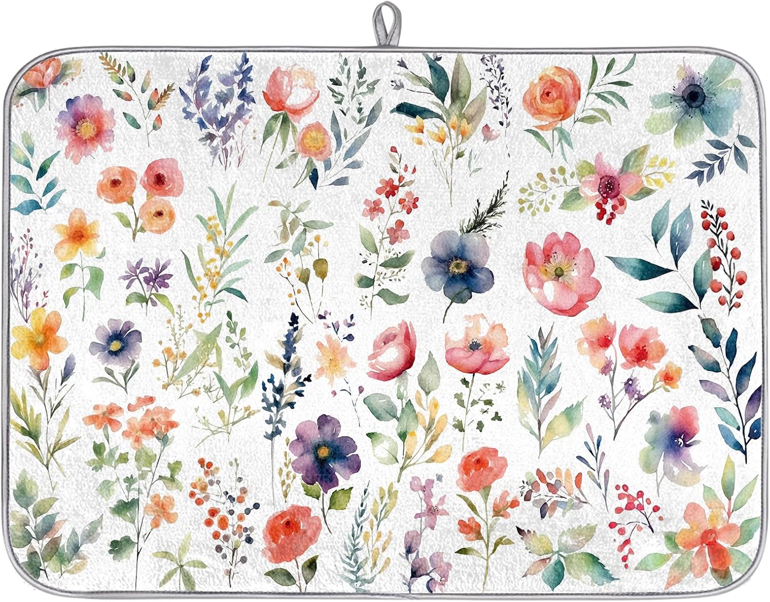 Hexteria Microfiber Absorbent Dish Draining Mat, Floral Dish Drying Mat for Kitchen Counter Washable Drainer Rack Pad, Vintage Floral
