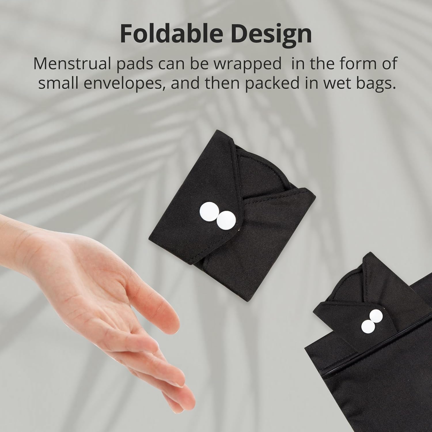 7pcs Set 1 pc Mini Wet Bag +6pcs Absorbent Reusable Sanitary Pads/Washable Cloth Menstrual Pads(Black,L)